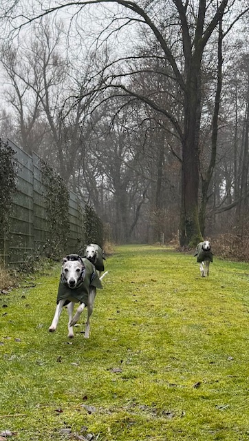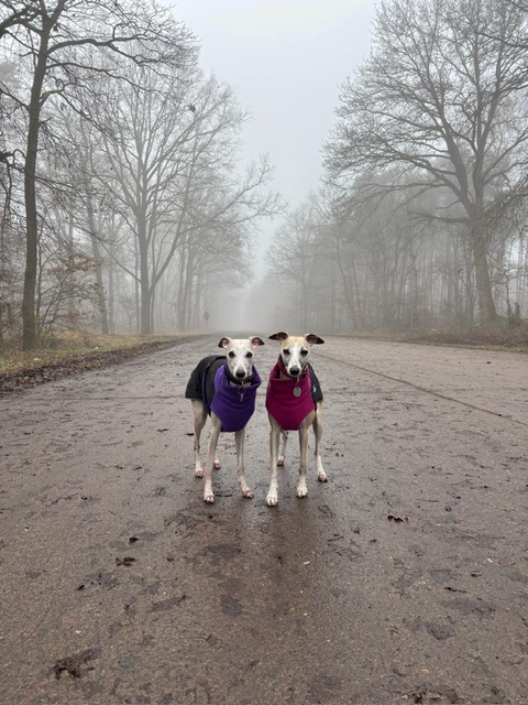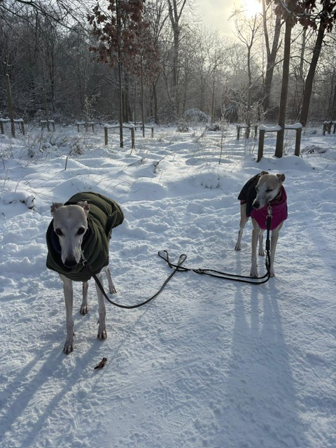 Kein Erbarmen: auch wenn es kalt ist, ab nach draußen! Sienna und Foxy in Bremen.