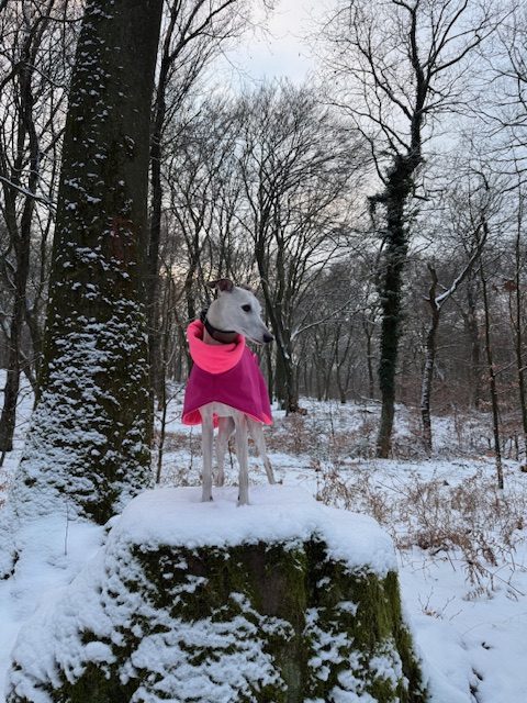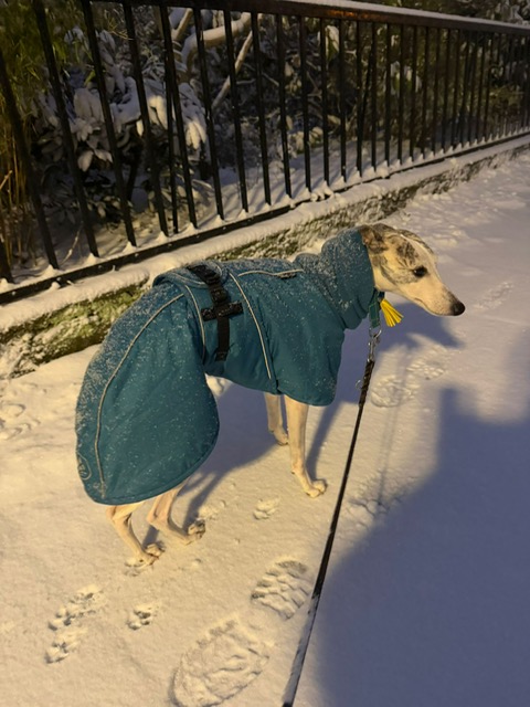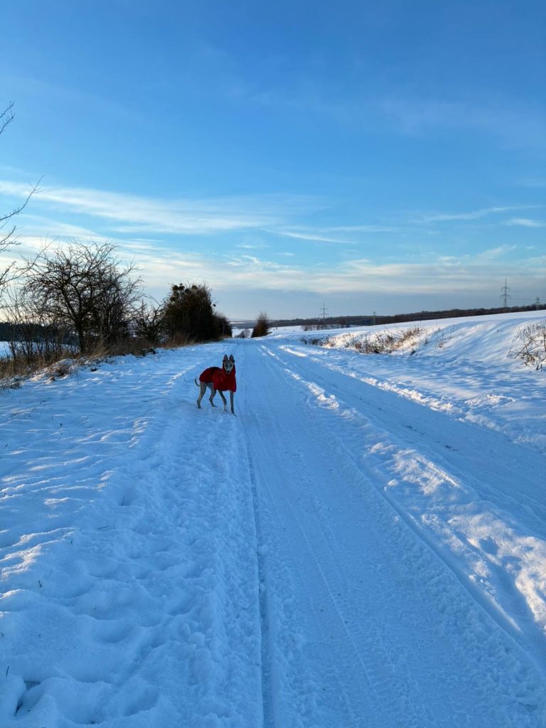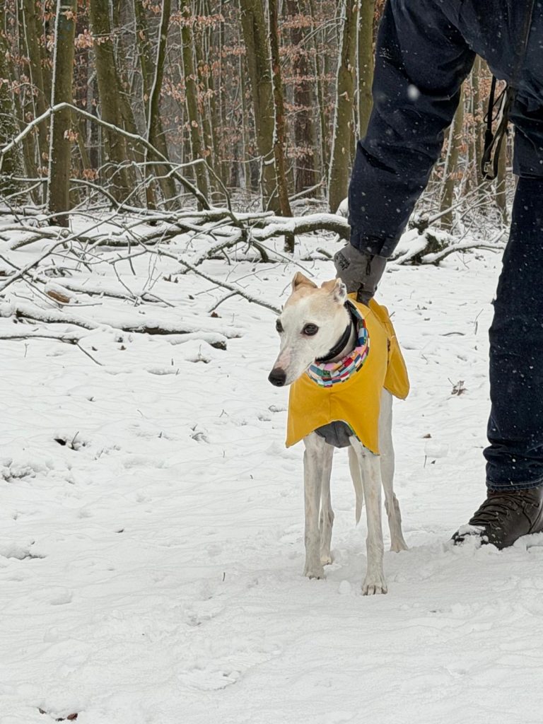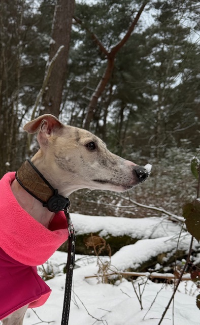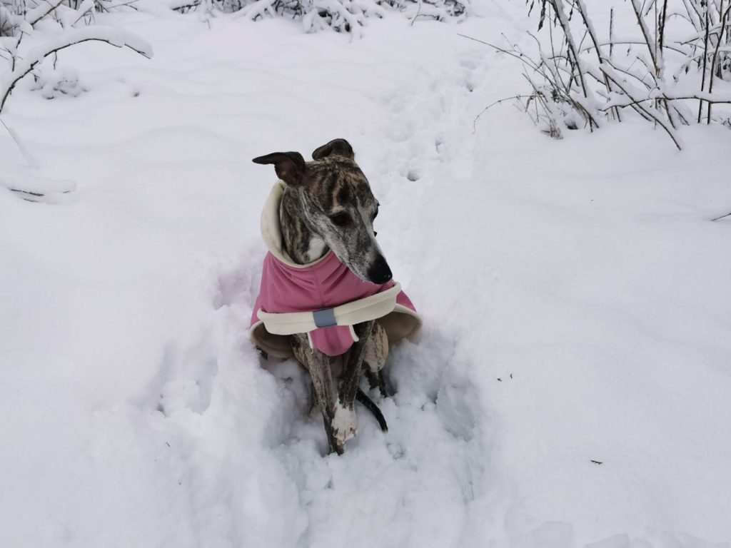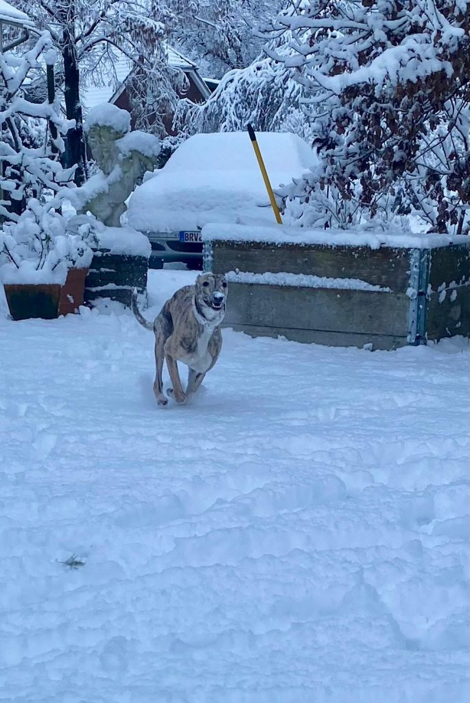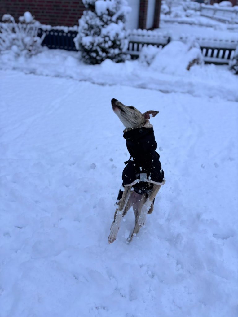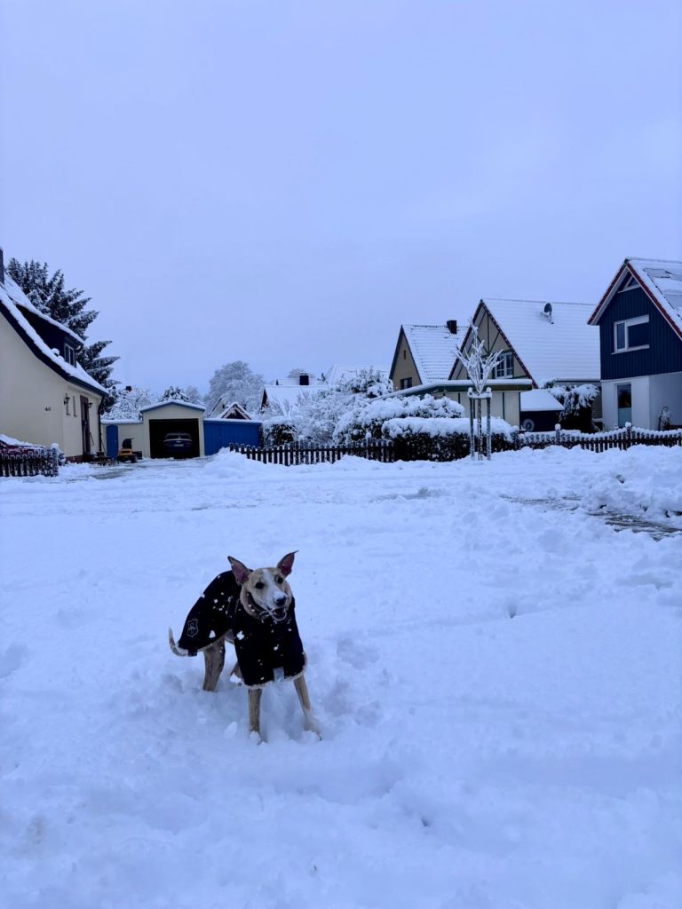 Ok, vielleicht habe ich gestern untertrieben. Wir haben Schnee- 1 cm, schätze ich. Die Pink Ladies und ich haben eine schöne Runde gedreht. Und jetzt weiß ich endlich, woher der Begriff „naseweis“ kommt 😉