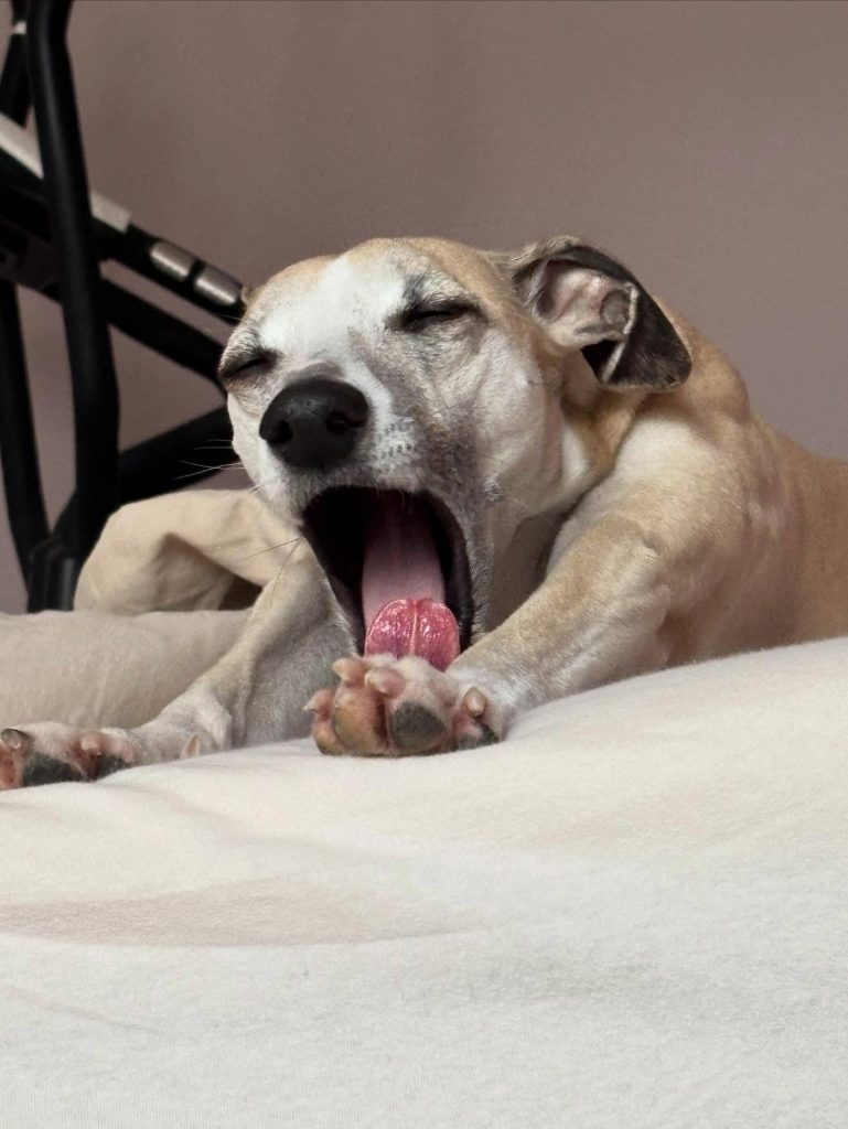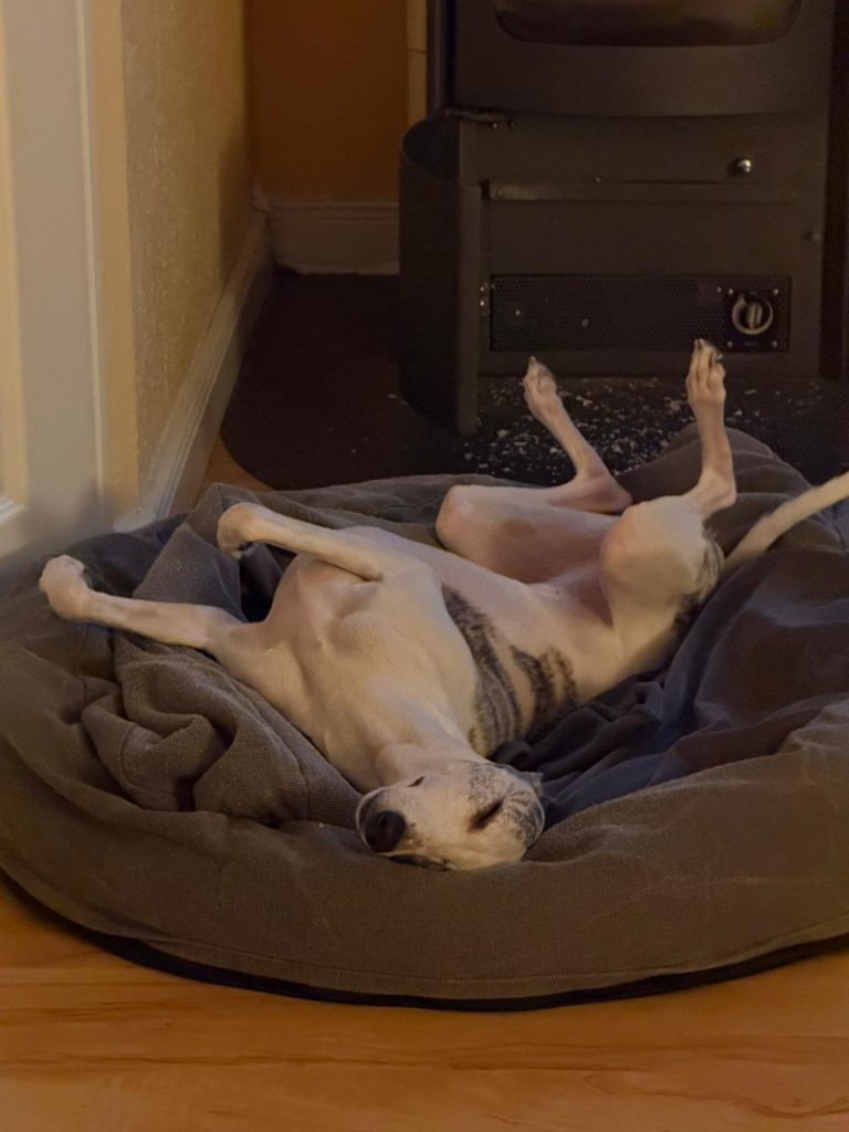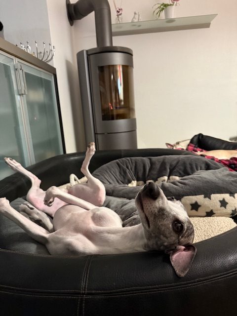 Semper-crescendo-Gen? Auch Fleur hat sich eine Entspannung vor dem Kaminofen verdient!