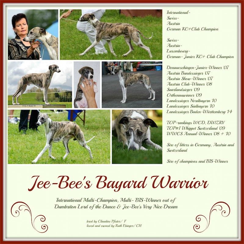Am 06.06.2006 wurde Jee-Bee’s Bayard Warrior geboren. Nun ist er (rein ausstellungstechnisch) schon ein Veteran. Ruth mag das nicht hören, ich weiß, aber ich finde, Hunde werden im Alter immer schöner 🙂 und er braucht sich nicht zu verstecken!