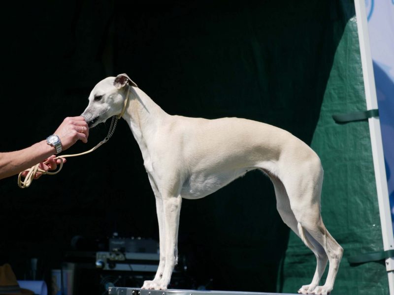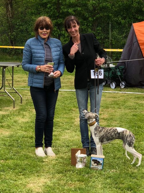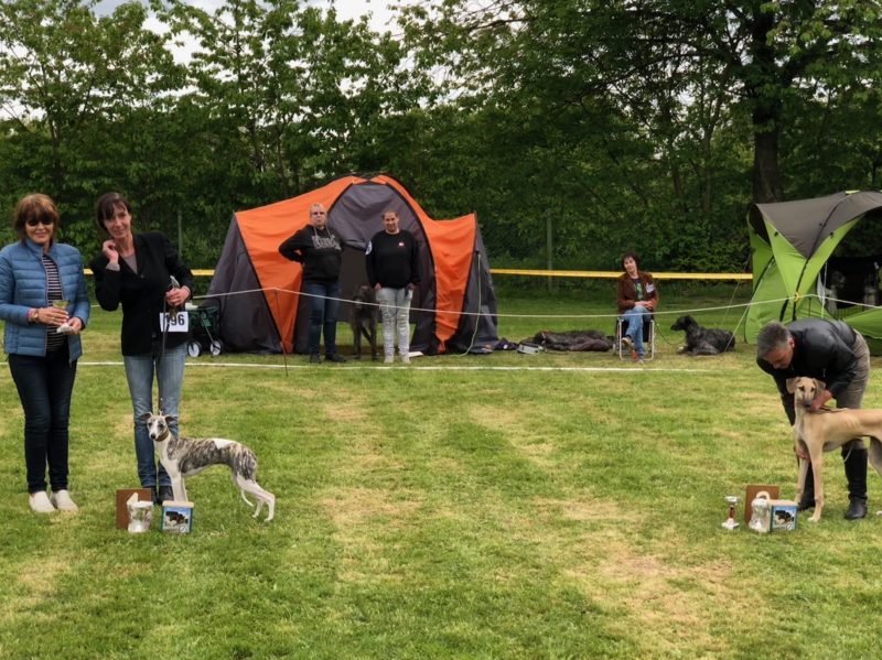 Aber ganz von vorn. Wir waren heute in Hahn-Hochdahl zur CAC-Ausstellung, auf der Herr Kliebenstein/D zur Bewertung der Whippets eingeladen war. Da seine Meldezahl aber so hoch war, wurden die Babies und Jüngsten von Frau Marpe/D gerichtet.