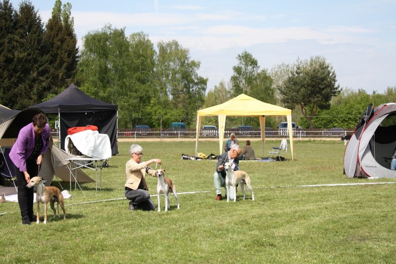 Auch am Sonntag fand eine Ausstellung, eine Landessiegerausstellung, statt, zu der Gianni und Dino gemeldet waren. In Landstuhl war Frau Müller/Ch eingeladen, die Whippets zu bewerten.