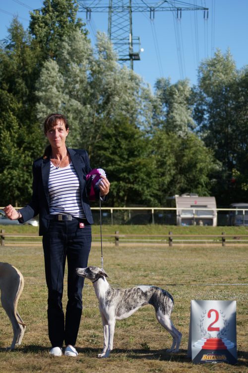 Leider habe ich, wie fast immer, kein Foto von meiner lieben Juli, Jewel Quest semper-crescendo, die in der stark besetzten Zwischenklasse (8 Hüdinnen) ein wundervolles V2, R-VDH bekam. 🙂