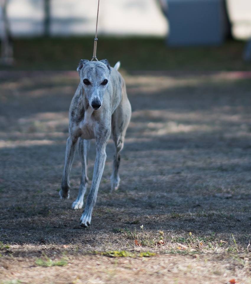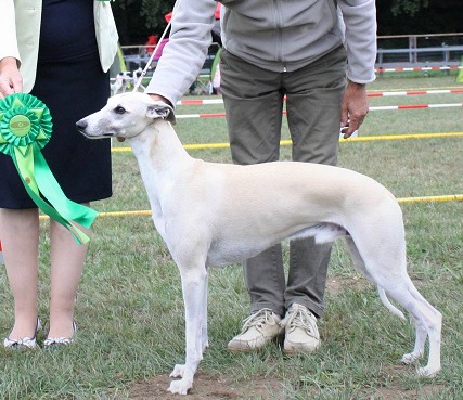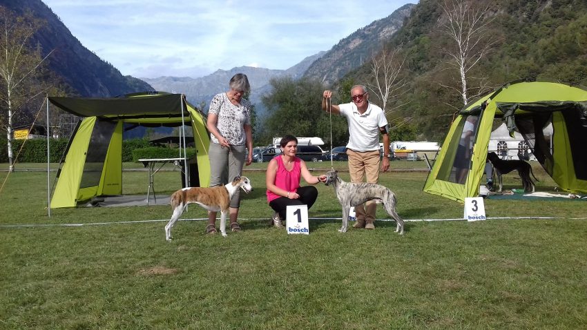 Gestern fand in Gelsenkirchen eine CAC-Ausstellung statt, zu der Frau Wagner/LUX eingeladen war, die knapp 50 gemeldeten Whippets zu bewerten. Ruth kam aus der Schweiz angereist und hatte neben Lenny auch zwei Söhne von unserem Miro, Int.MCh Bon d’Or semper-crescendo, gemeldet.