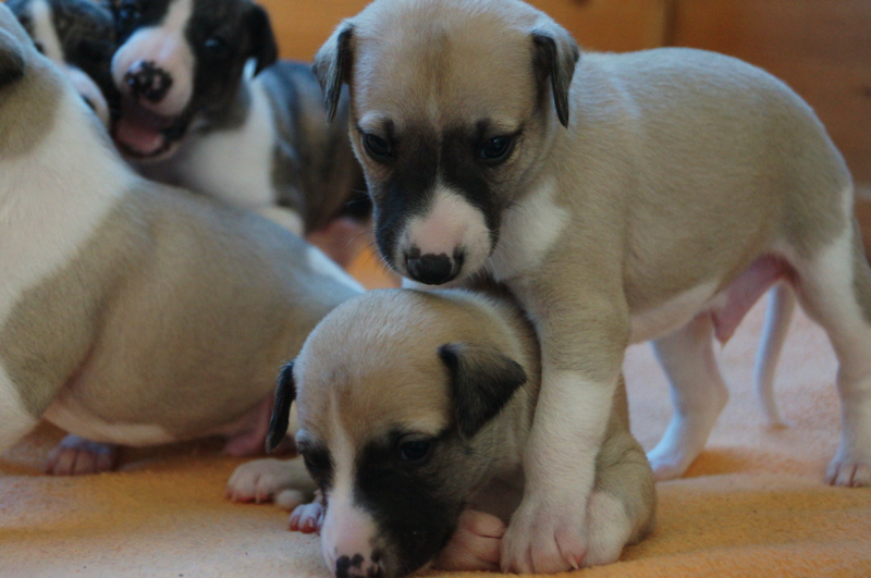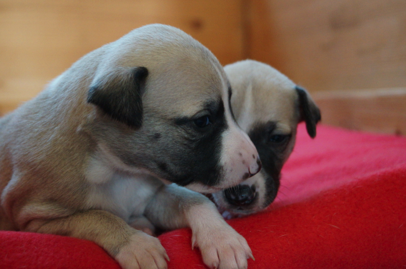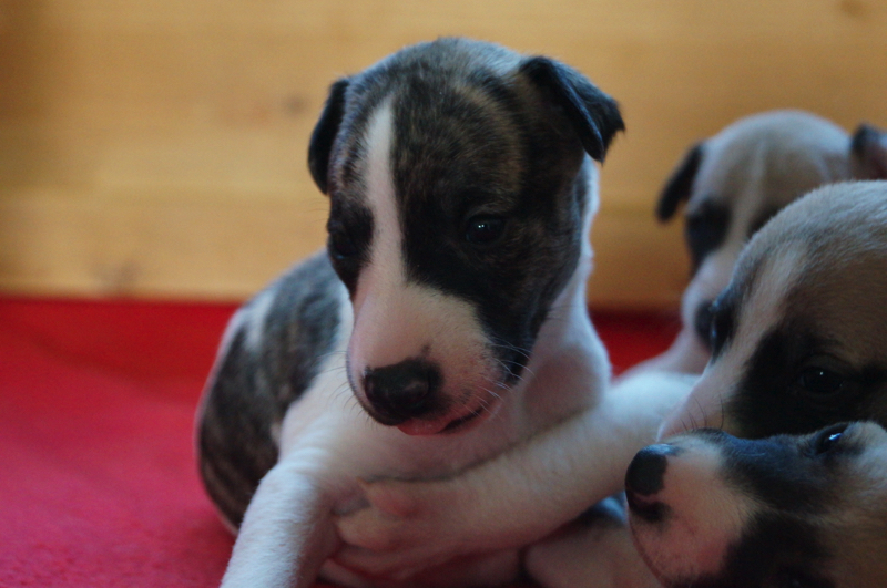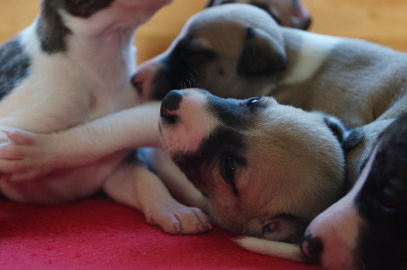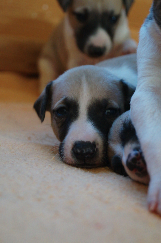 Leider spielt das Licht im Haus nicht mehr richtig mit, so dass die Fotos von den Welpen zumeist verwackelt oder recht dunkel sind. Nichts desto trotz möchte ich Euch teilhaben lassen an den wenigen Fotos.