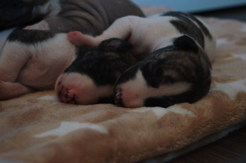 Am Wochenende wird es vermutlich soweit sein; die Welpen müssten langsam die Augen öffnen. Bis dahin gibt es noch mal einen Gruß der scheinbar schlafenden Zwerge.