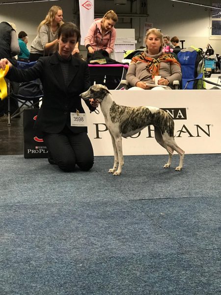 Für Joy, Paperlapap’s Joy @ semper-crescendo, war es die erste Hallenausstellung. Sie trat in der mit 7 Hündinnen stark besetze Jugendklasse an. Zu Beginn war sie etwas nervös, aber sie gewöhnte sich schnell an die Hektik und die Lautstärke. Im Ring machte sie toll mit, lief vor allem sehr schön.