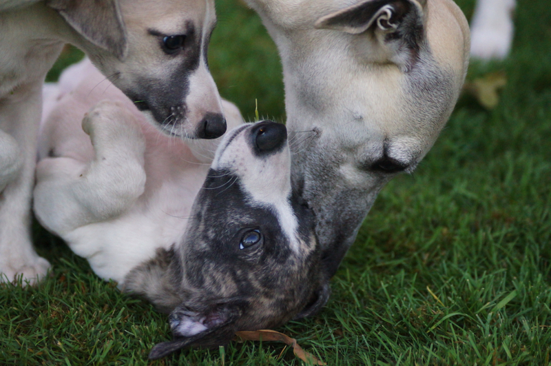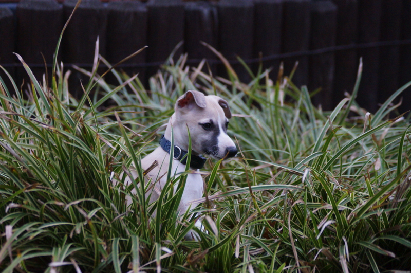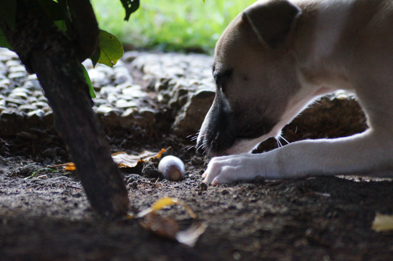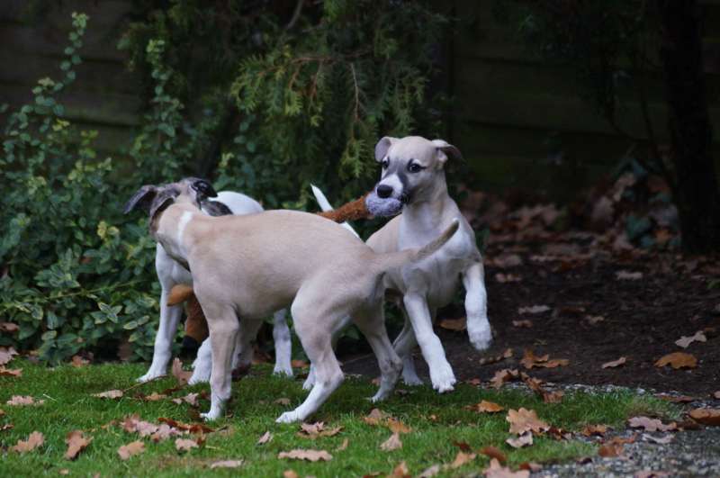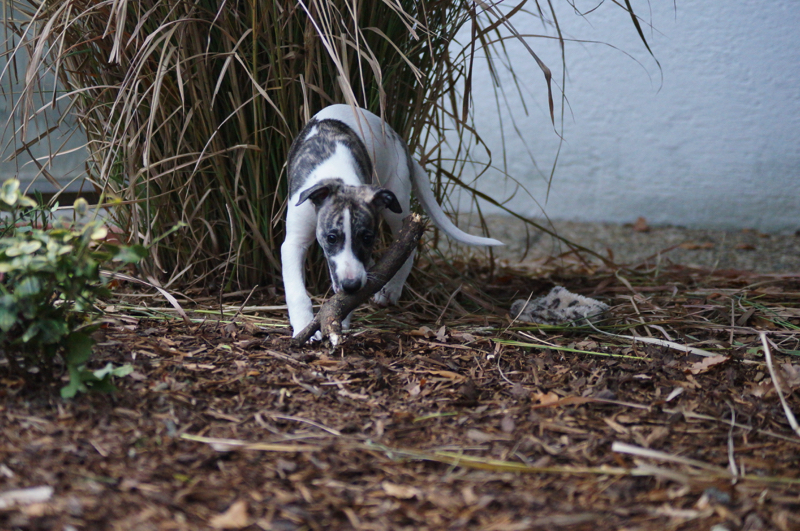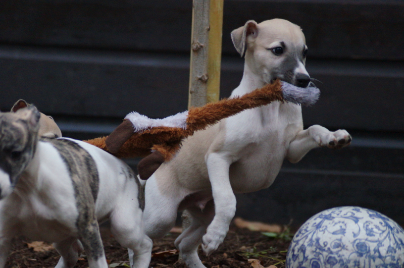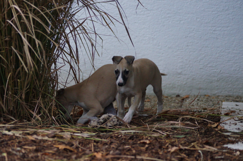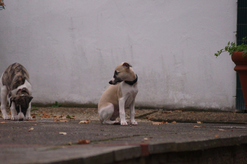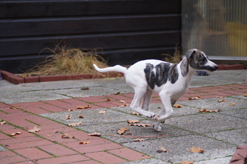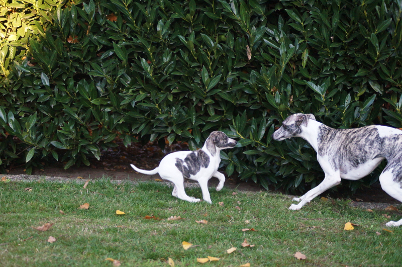 Zwischenzeitlich ist es gar nicht so einfach, jeden Welpen beim Toben und Rennen im Garten zu fotografieren. Sie sind in alle Himmelsrichtungen verteilt und jeder hat irgendwie etwas anderes zu tun.