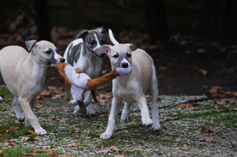 Die Welpen sind aufgeschlossen, agil, wohl genährt, sicher in ihrer Umwelt unterwegs und gesund. Bei allen drei Rüden sind beide Hoden bereits vollständig abgestiegen.