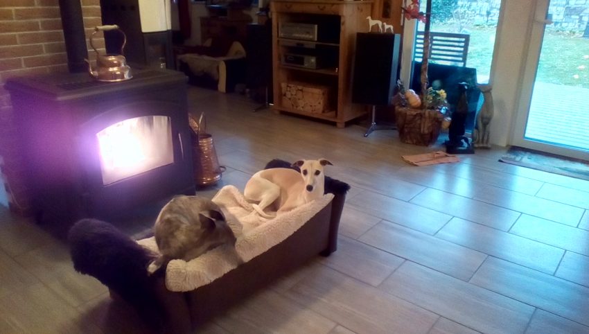 Hoshi, Bella Donna semper-crescendo und Newt, Jaipur semper-crescendo, haben es sich vor dem warmen Kamin gemütlich gemacht.