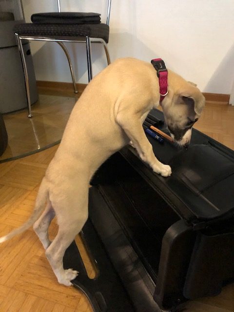 neugierig wird der Koffer von Frau Asmuth beschnuppert.