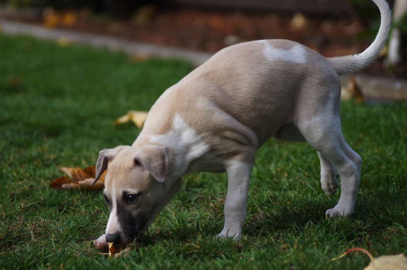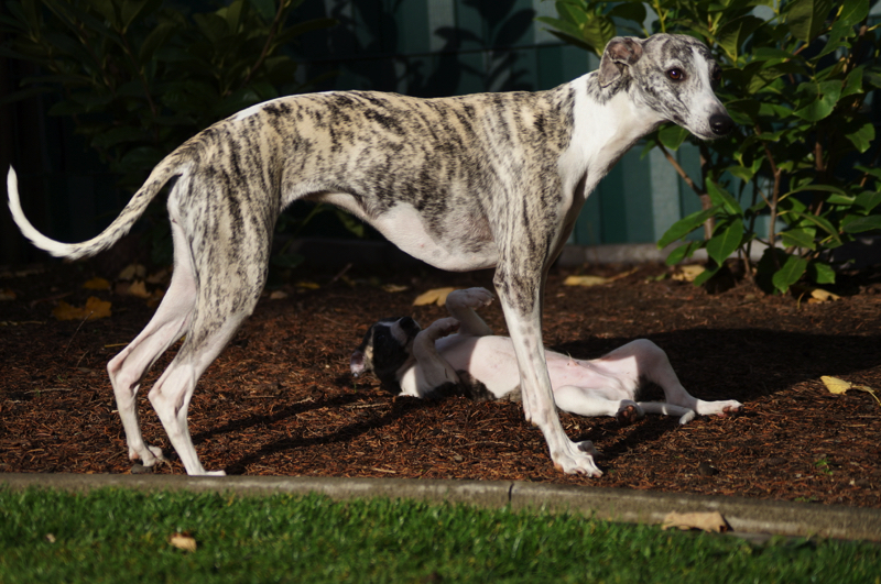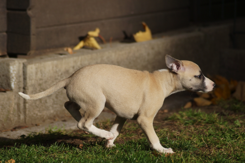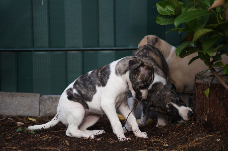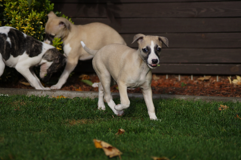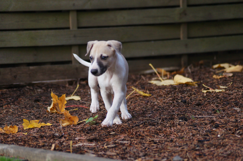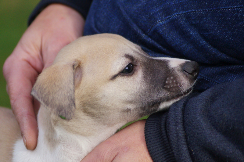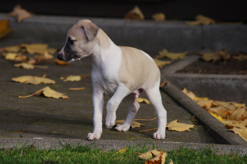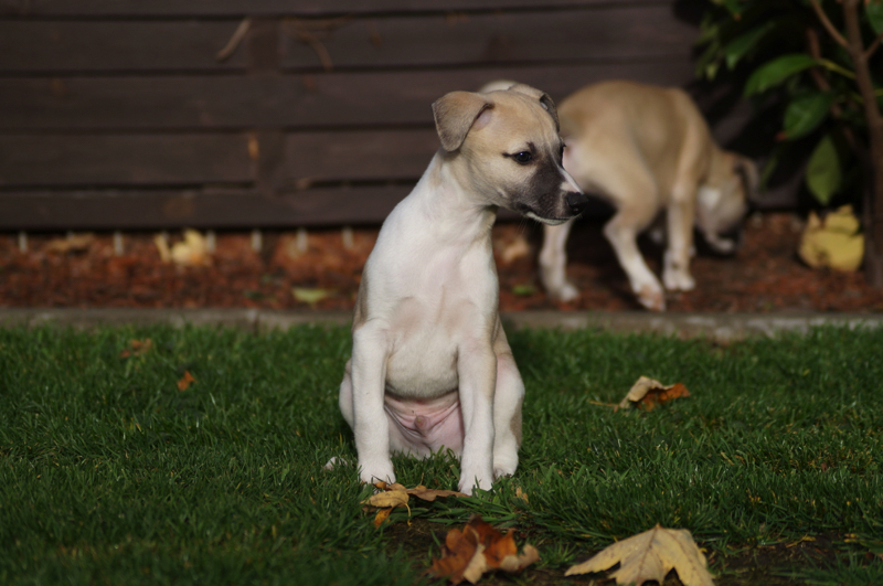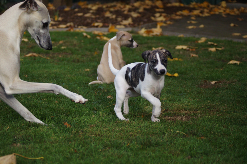 Hui, die letzten beiden Tage waren aufregend für die Zwerge. Zuerst bekamen sie von dem ältesten Whippet, den ich kannte, Lenny (Koseilata’s Untercover Agent) – er wurde 16,5 Jahre alt- ein Kuschelkörbchen vererbt. Zudem trugen die Welpen das erste Mal Halsbänder, was sie alles andere als schön fanden. Es sind süße Bilder entstanden.