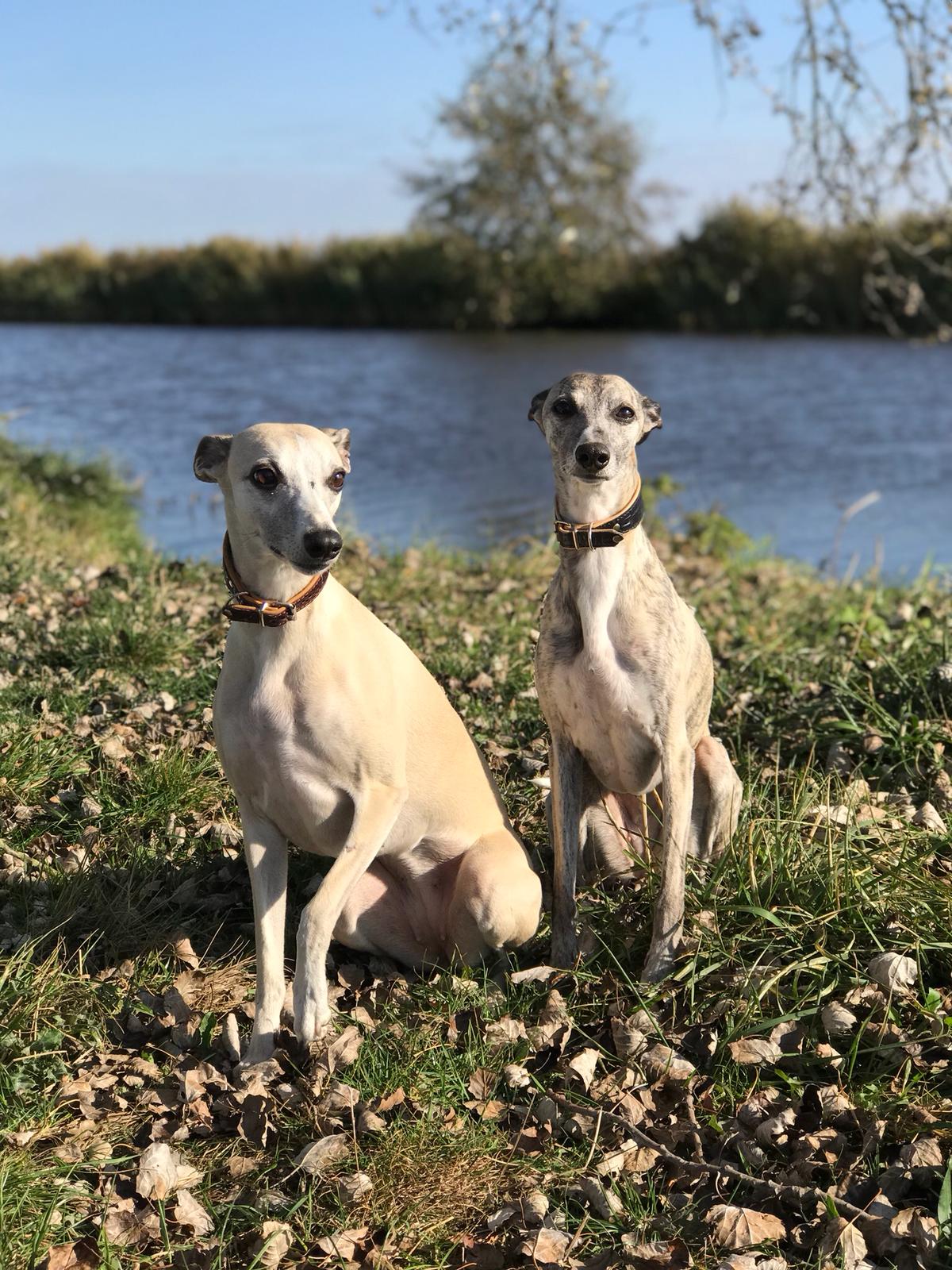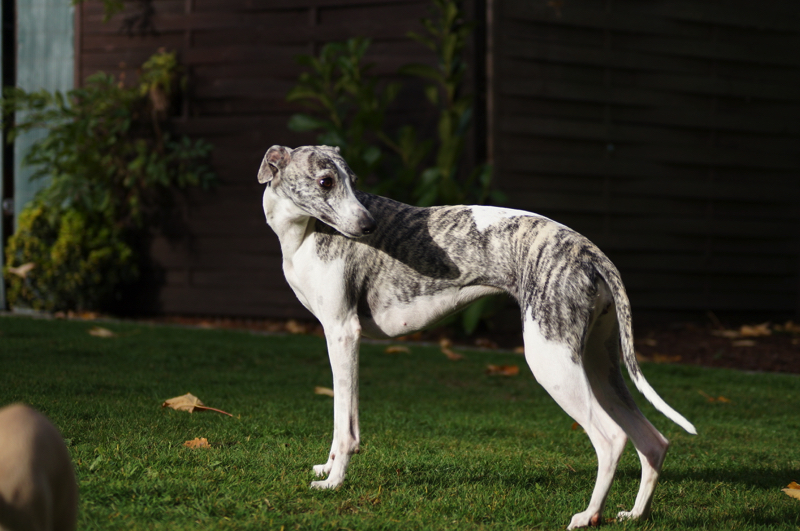 Gestern, als ich mit den Hunden ging, schloss ein älterer Herr mit seinem Fahrrad zu mir auf und begleitete mich ein Stück. Mit herrlichem spanischen Akzent sprach er mich an: „Junge Frau“ (ahhhh, geht doch- Danke! 😉 ) , „sagen Sie mal, sind das Greyhounds?“. „Knapp vorbei- es sind Whippets. Ähnlich einer kleiner Ausgabe von Greyhounds.“ „Wie schnell können die laufen?“. „Och, wenn alle Bedingungen stimmen, so um 50 km/h“. Da schaut er auf seinen Fahrradtacho und sagt: „Ob Sie jetzt nicht ein bisschen geflunkert haben?“. „Nein, das stimmt schon. Die sind wirklich schnell. Deswegen sind sie hier in der 30er-Zone auch angeleint. Sonst bekomme ich einen Strafzettel.“ Da musste er herzlich lachen.
