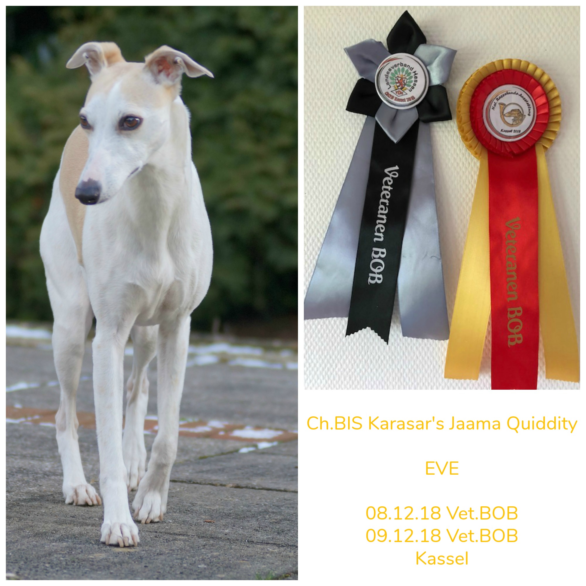 Wir hatten Eve in der Veteranenklasse der Hündinnen und Joy in der Jugendklasse der Hündinnen an beiden Tagen gemeldet.