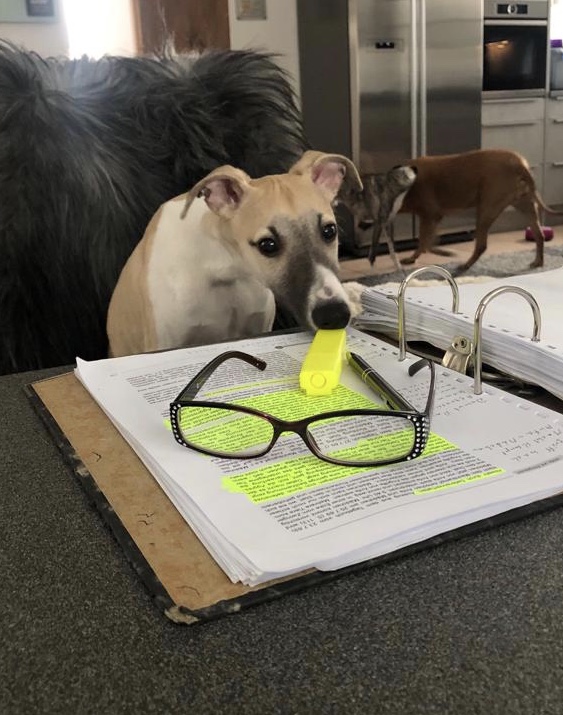 Cuno, Key to Mystery semper-crescendo, ist immer und überall dabei. Hier bei der genauen Buchprüfung von Frauchen 😉