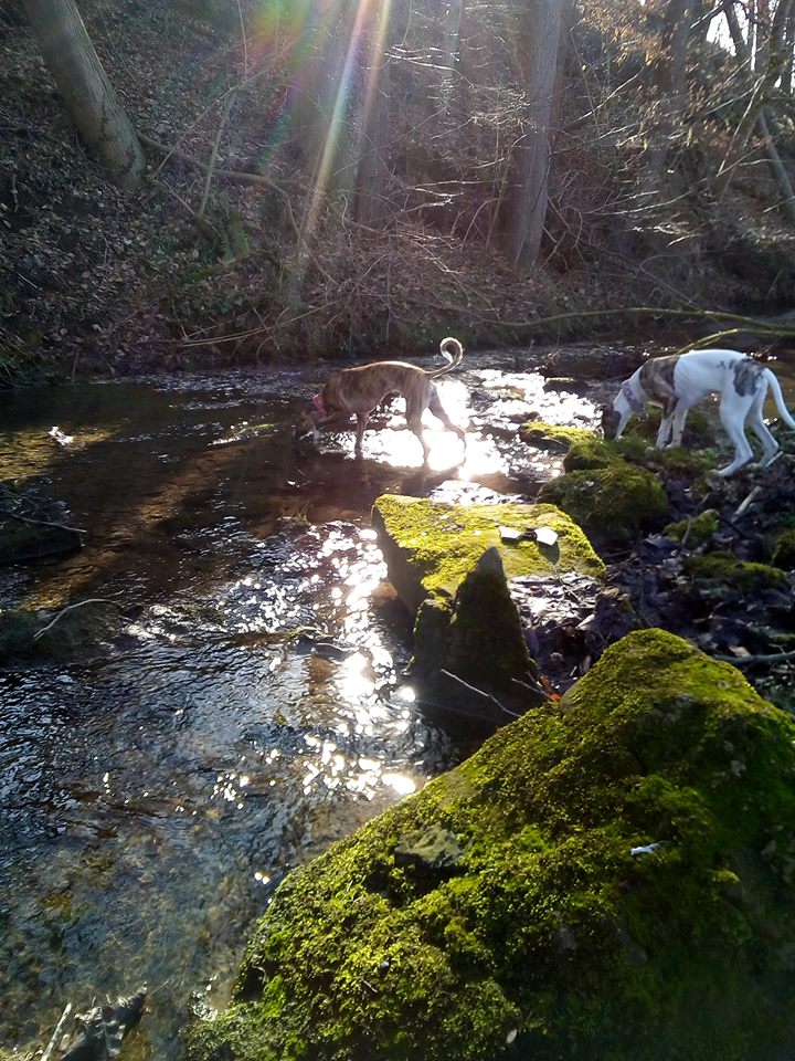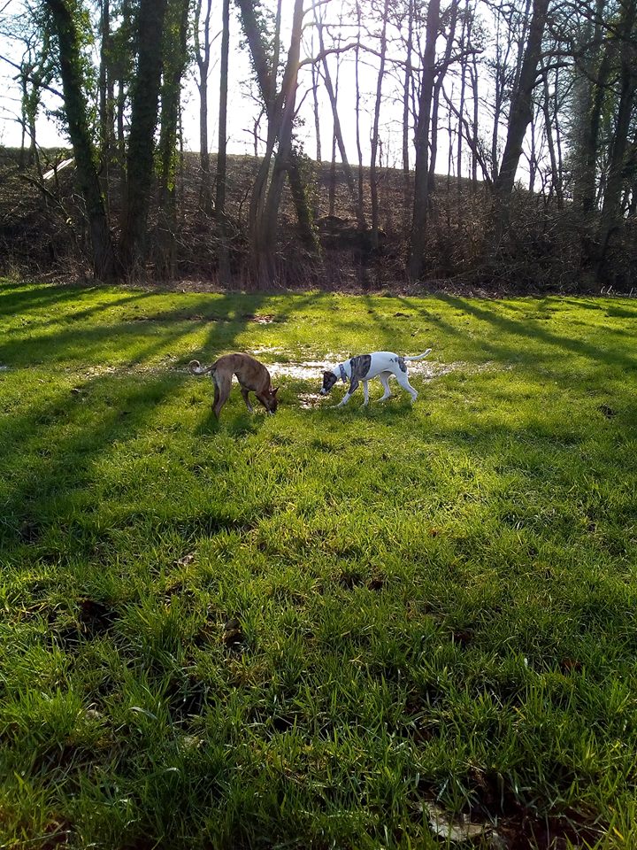 Gestern haben wir das schöne Wetter genutzt und waren mit 8 Whippets und zwei Rhodesian an den ehemaligen Fischteichen in der Haard. Tobi’s Geduld wurde bei dem Versuch, alle Hunde und die beiden Sandra’s gelungen auf ein Foto zu bekommen, ordentlich strapaziert. Denn einer von den 10 guckt irgendwie immer komisch 😉