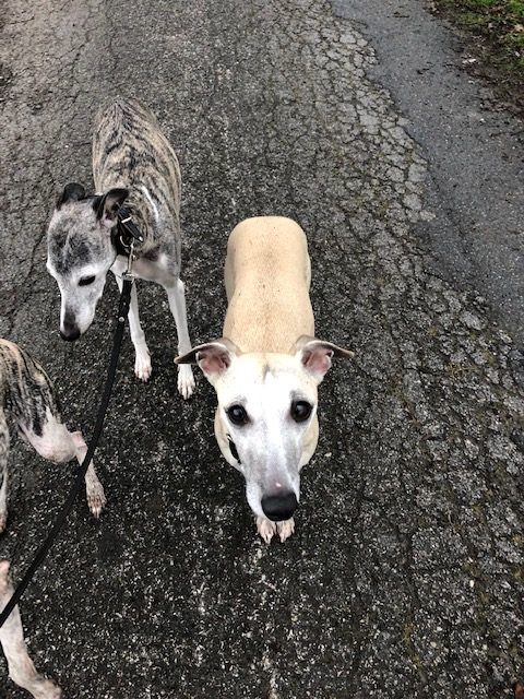 Whippets, insbesondere die Rüden, brauchen sich um das Altern keine Gedanken machen. Optisch werden sie immer schöner. Vollends ausgereift mit einem weisen Blick.