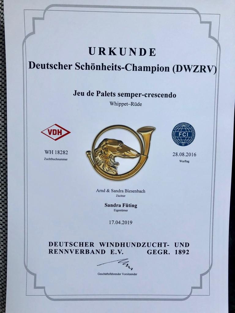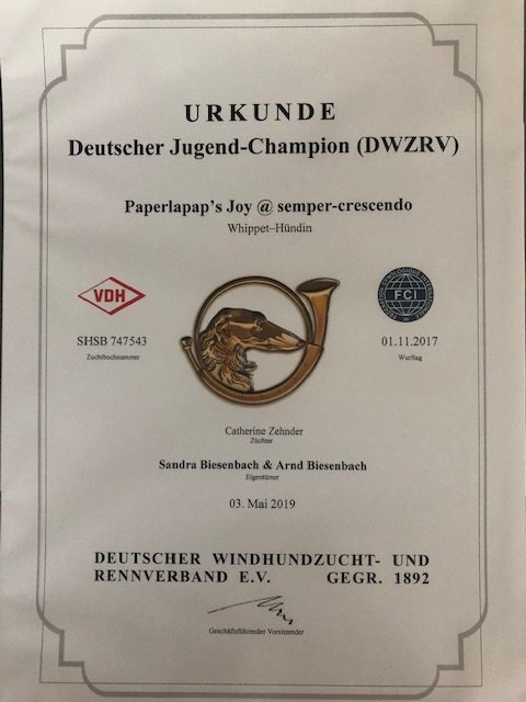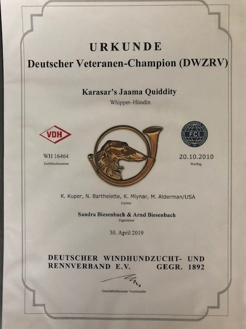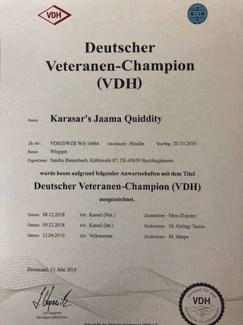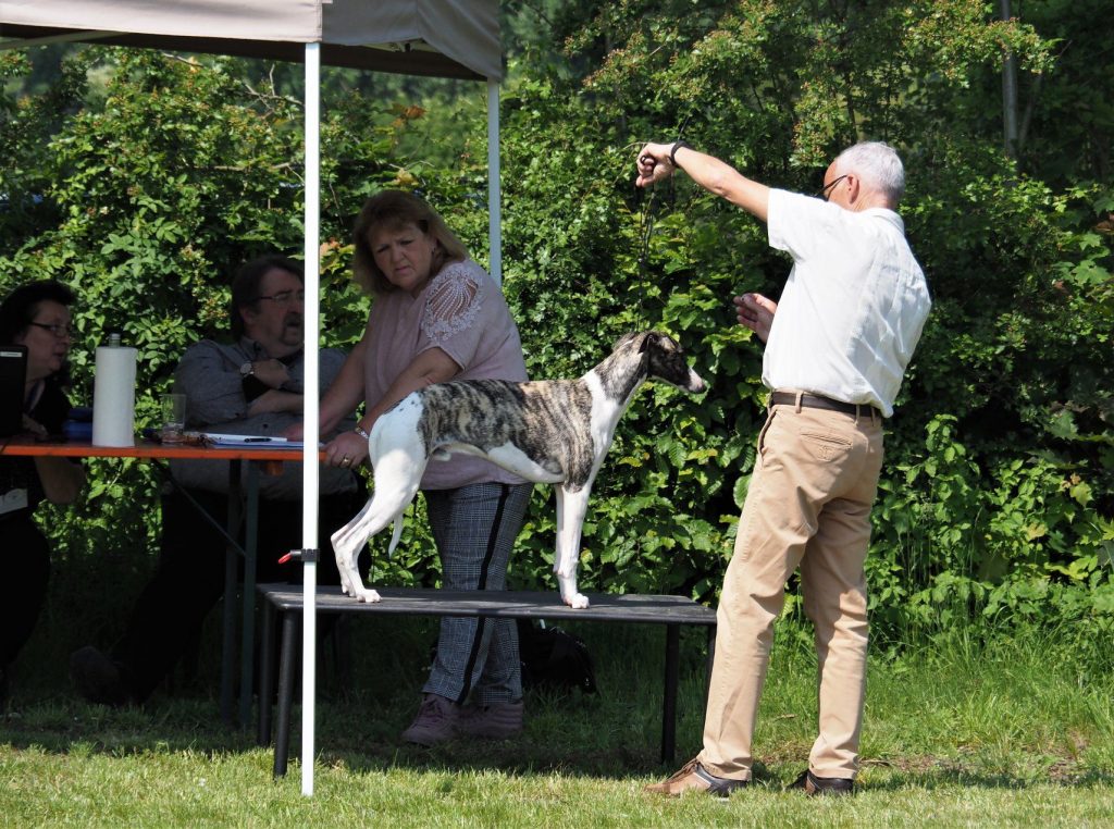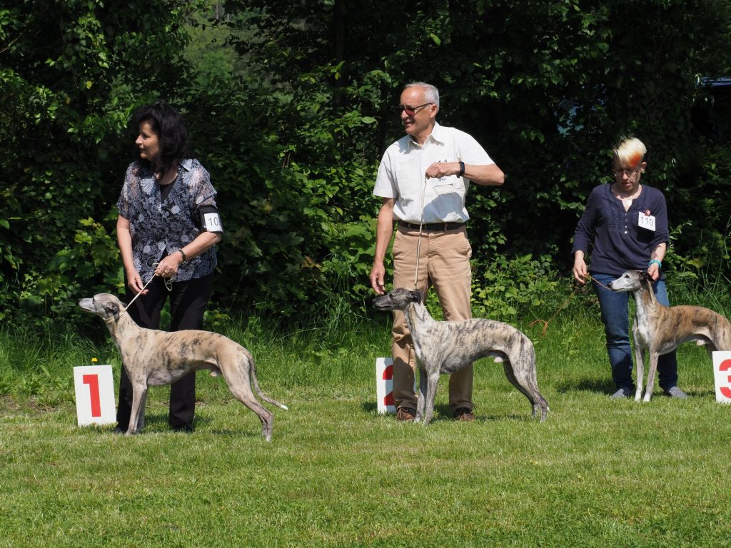 Gestern fand in der Schweiz das Club-Match des WWCS statt, zu der immer viele Whippets gemeldet werden. Herr Kuszyk/PL (Synergy-Whippets) war eingeladen, die Whippets zu bewerten. Er geizte nicht mit sg-Bewertungen…umso mehr freuen wir uns über die tollen Ergebnisse von Miro, Int.MCh. Bon d’Or semper-crescendo, und seinen Kindern!