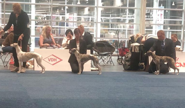 Gestern bewertete der Rassespezialist, Herr Rudolph/D die Whippets auf der CAC-Ausstellung in Gelsenkirchen.