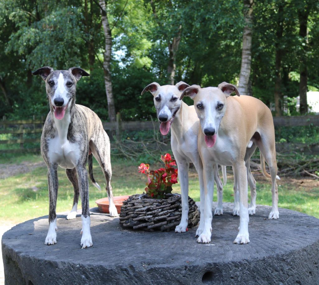 Am Freitag hatten wir Besuch. Die beiden Greyhounds von Barbara waren tagsüber hier. Die beiden netten Jungs haben sich hier ordentlich benommen und mit unserem Rudel hat es prima geklappt.