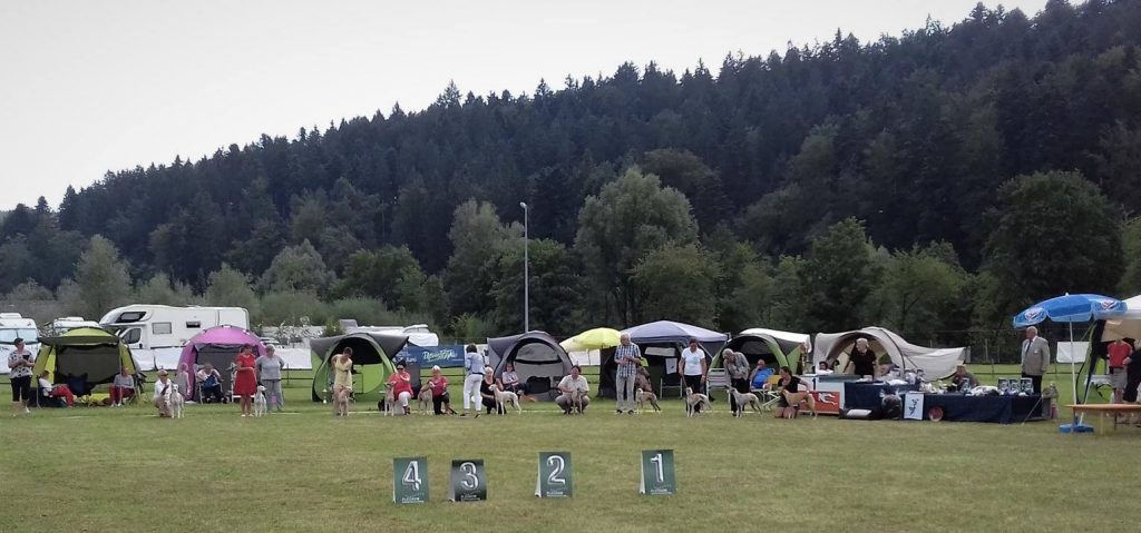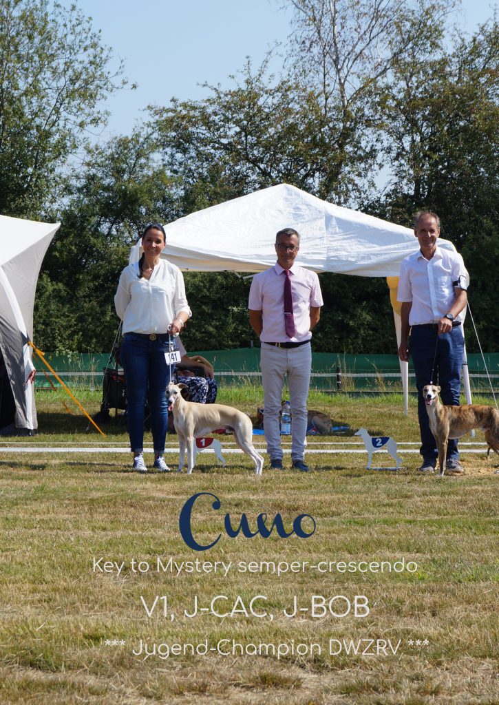 Wow, was für ein Durchmarsch von Cuno! Vorgestern war ich mit Sandra in Münster bei der CAC-Ausstellung. Herr Kerpan/Sl richtete dort die Whippets bei 33 Grad Hitze….