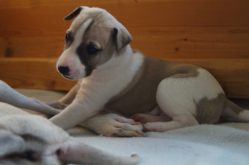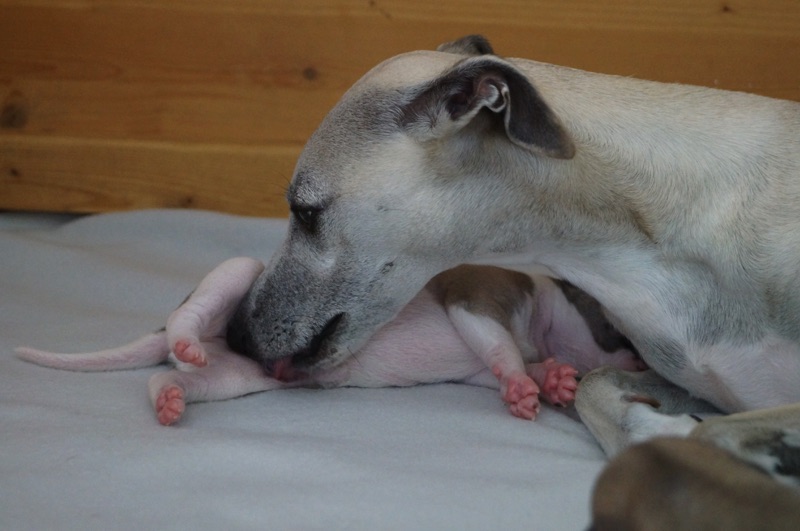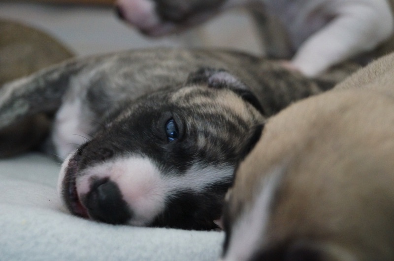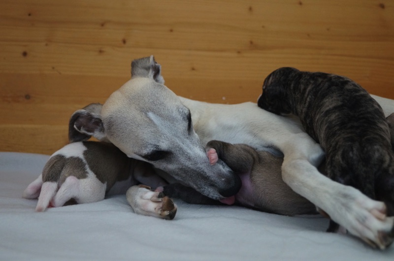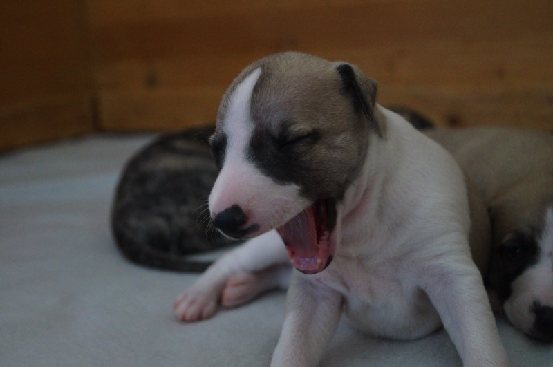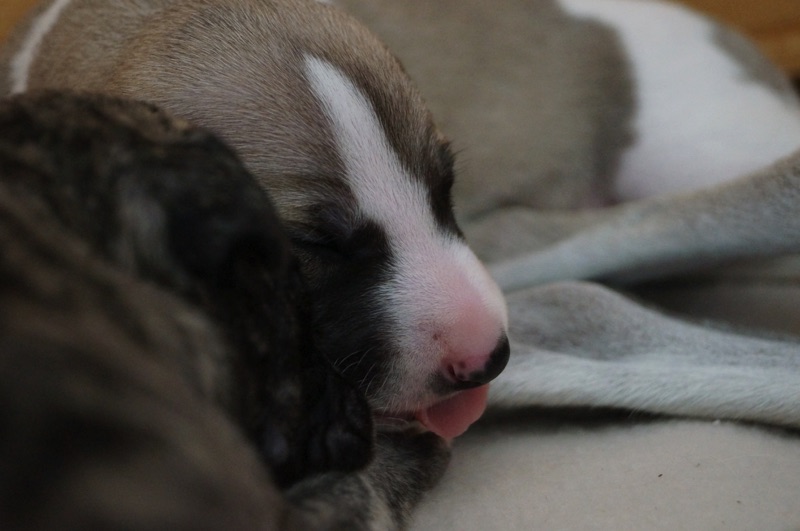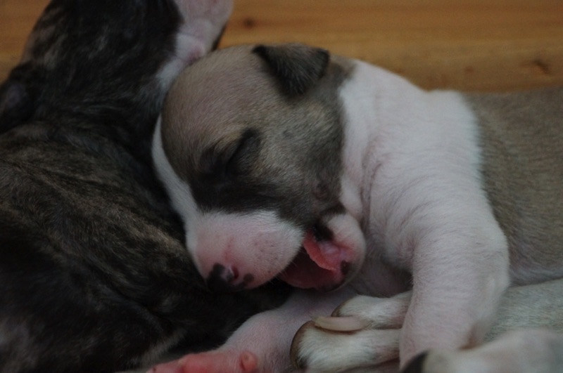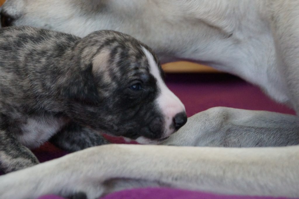 Die Zwerge haben nun alle die Augen einen Spalt weit geöffnet. Fotos sind mir nur wenige gelungen, da die Welpen zumeist schlafen und in der Wachphase natürlich kräftig trinken. In den kommenden Tagen wird es aber mehr Action geben und dann sind sicher auch wieder viele Bilder drin.