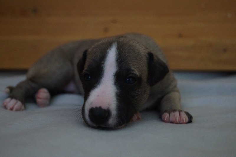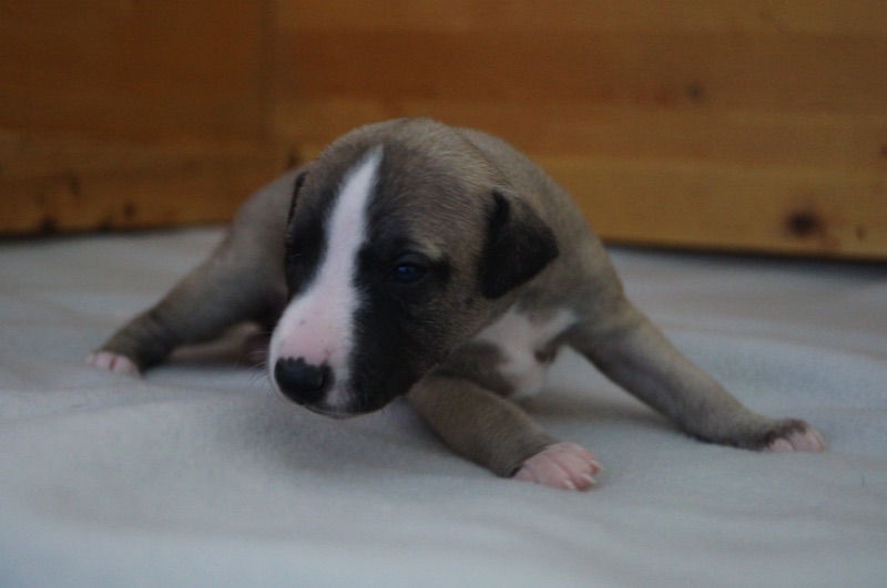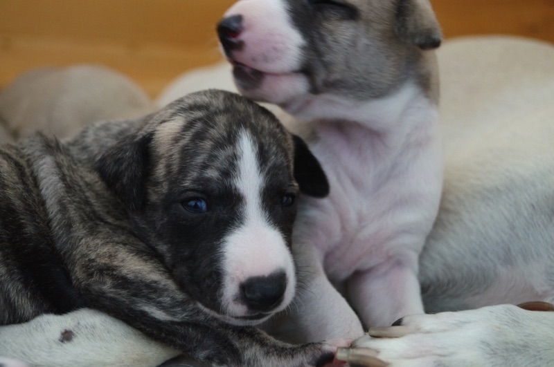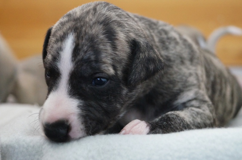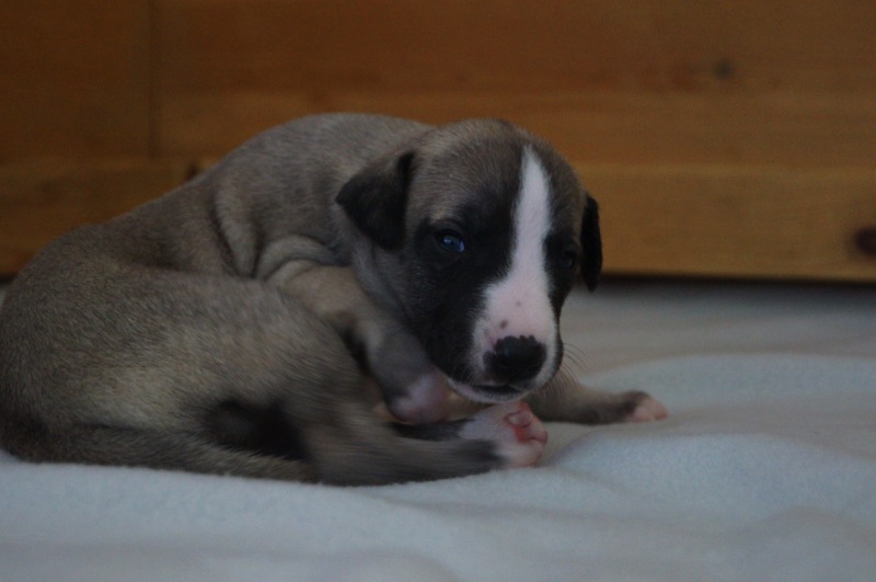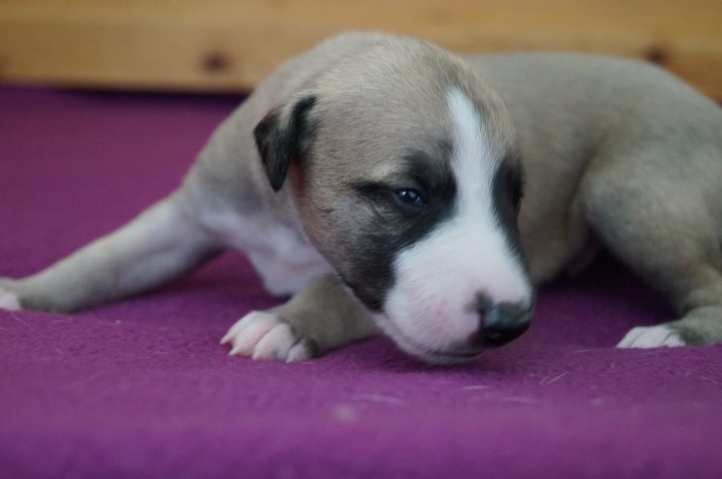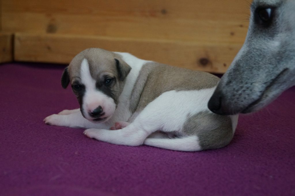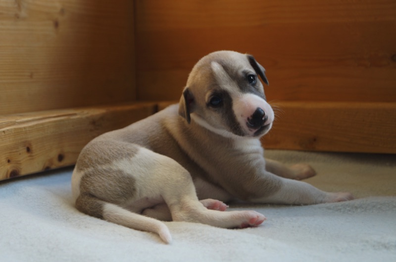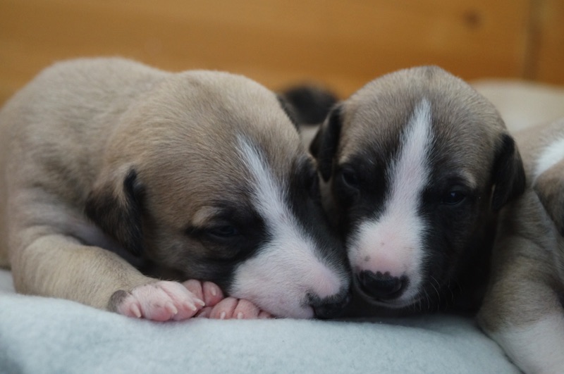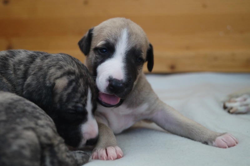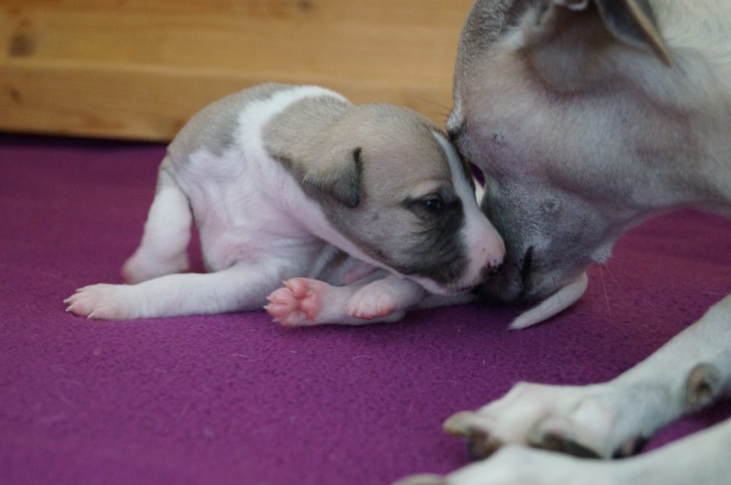 Heute sind die Welpen schon zwei Wochen alt. Sie haben ihre Geburtsgewichte schon mehr als verdoppelt und fangen langsam an, auf wackeligen Beinchen durch die Wurfkiste zu krabbeln. In den kommenden Tagen werden sie die Augen öffnen. Ein Moment, auf den wir uns immer sehr freuen.