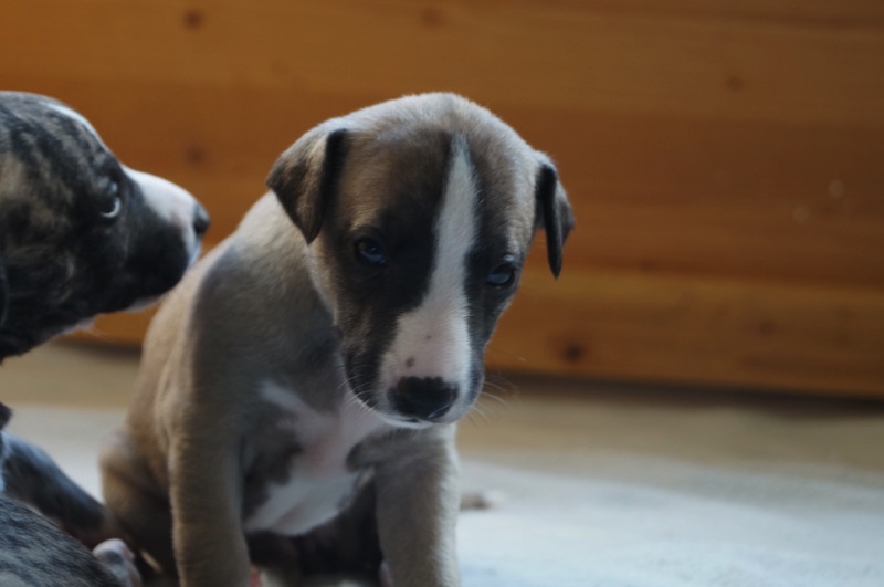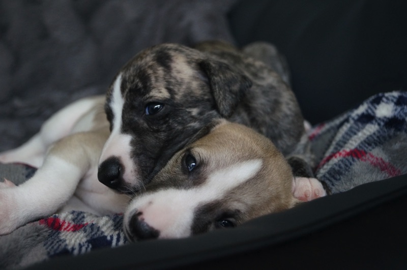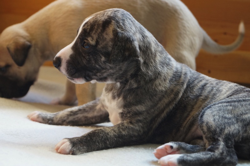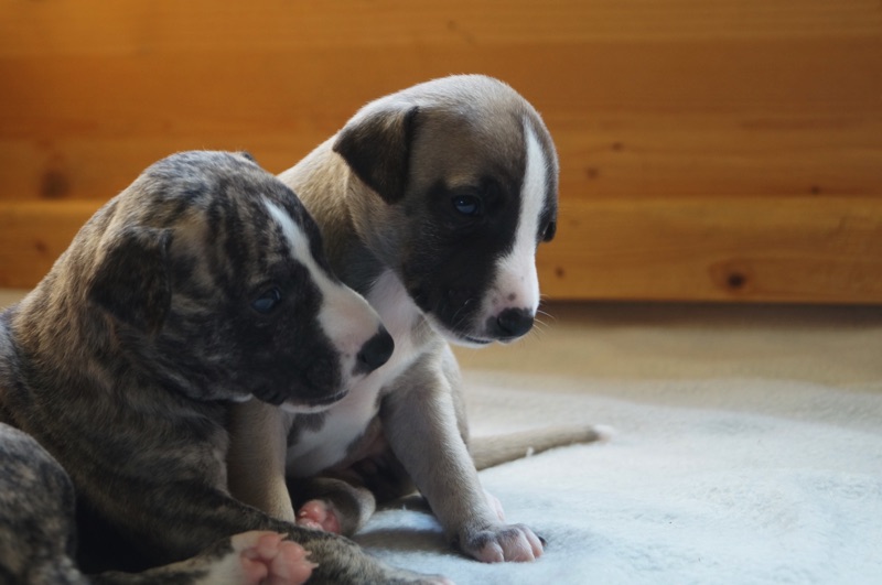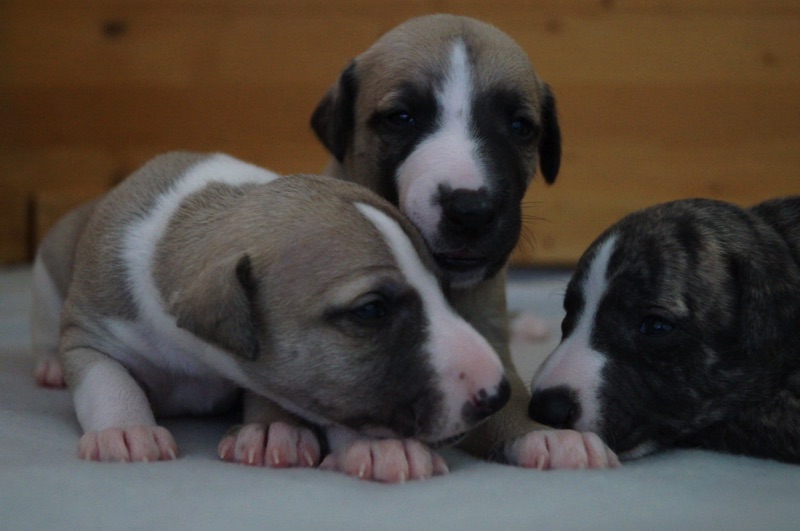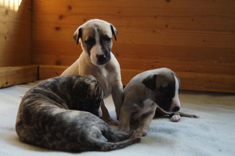 Gestern sind die Welpen drei Wochen alt geworden. Sie agieren mittler Weile miteinander und werden auch körperlich aktiver, so dass wir sie heute vom Kinderzimmer ins Wohnzimmer umziehen werden.