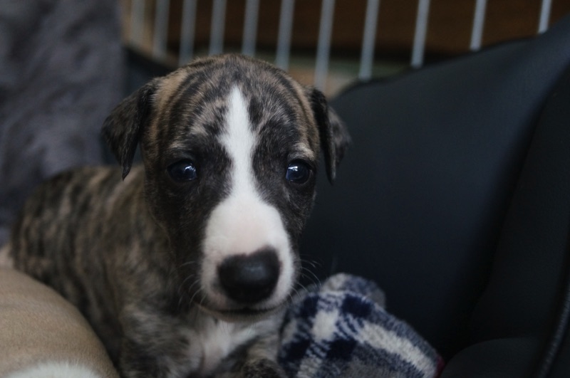Zwischenzeitlich sind die Welpen ins Wohnzimmer umgezogen und erkunden langsam die neue kleine Welt.