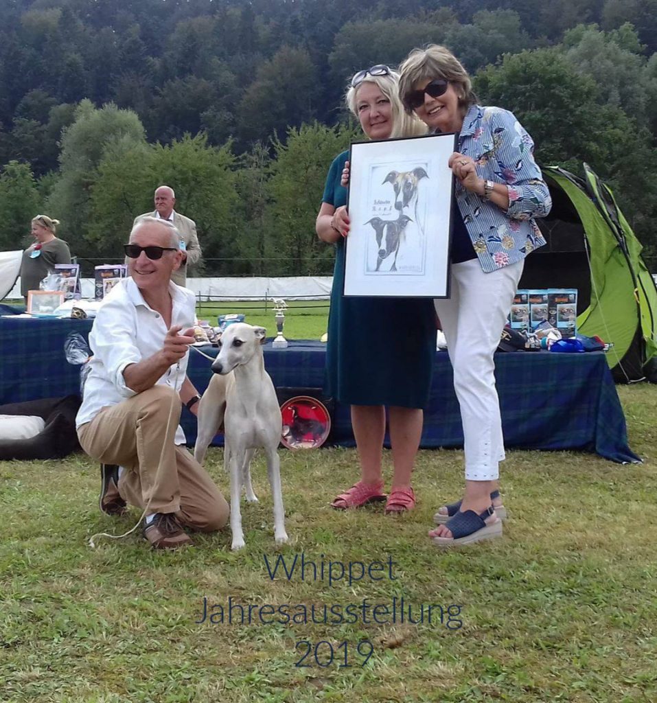 Insgesamt 11 Whippets traten hier an. Gianni aber überzeugte und erhielt einen wunderschönen Sonderpreis