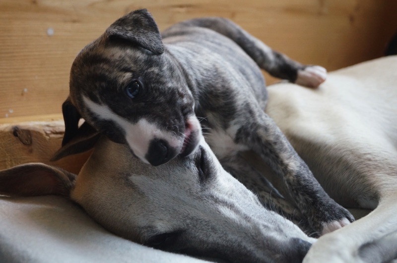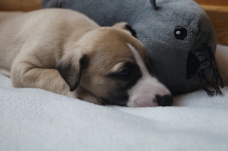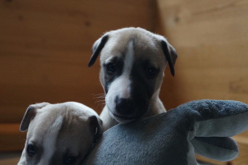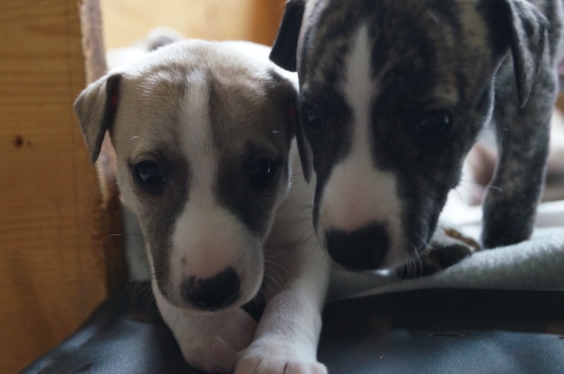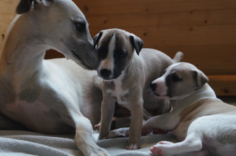 Die Mäuse sind heute schon 4 Wochen alt. Die Zeit vergeht wie im Fluge. Den kleinen Auslauf haben die Welpen schon gut im Griff und auch das erste Welpenfutter wird gern genommen.