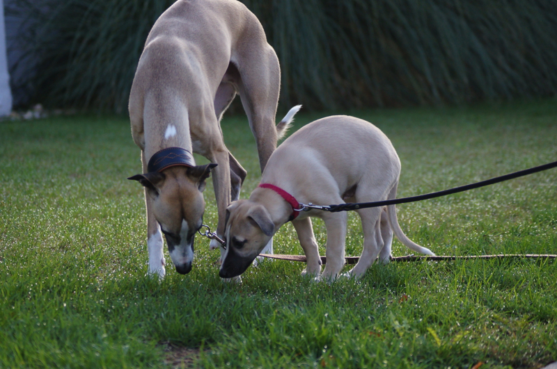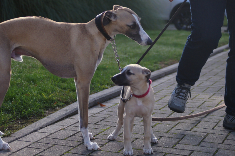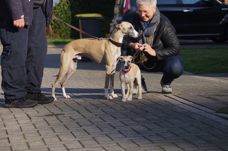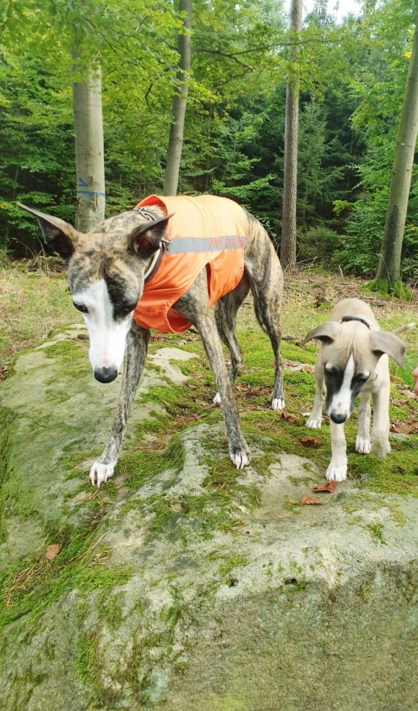 Ivy hat Polly bereits am ersten Abend „adoptiert“ und putzt sie erst einmal ausgiebig.kleiner Mann kleines Körbchen, großer Mann großes Körbchen. Loki und Justuslive dabei und mittendrin: Lounes bei seinem Ausflug zu, Coursing in Grabauch Lovis ist von Anfang an dabei. Erste Mini-Trail-Wanderung mit ihrer großen Begleitung Ida.