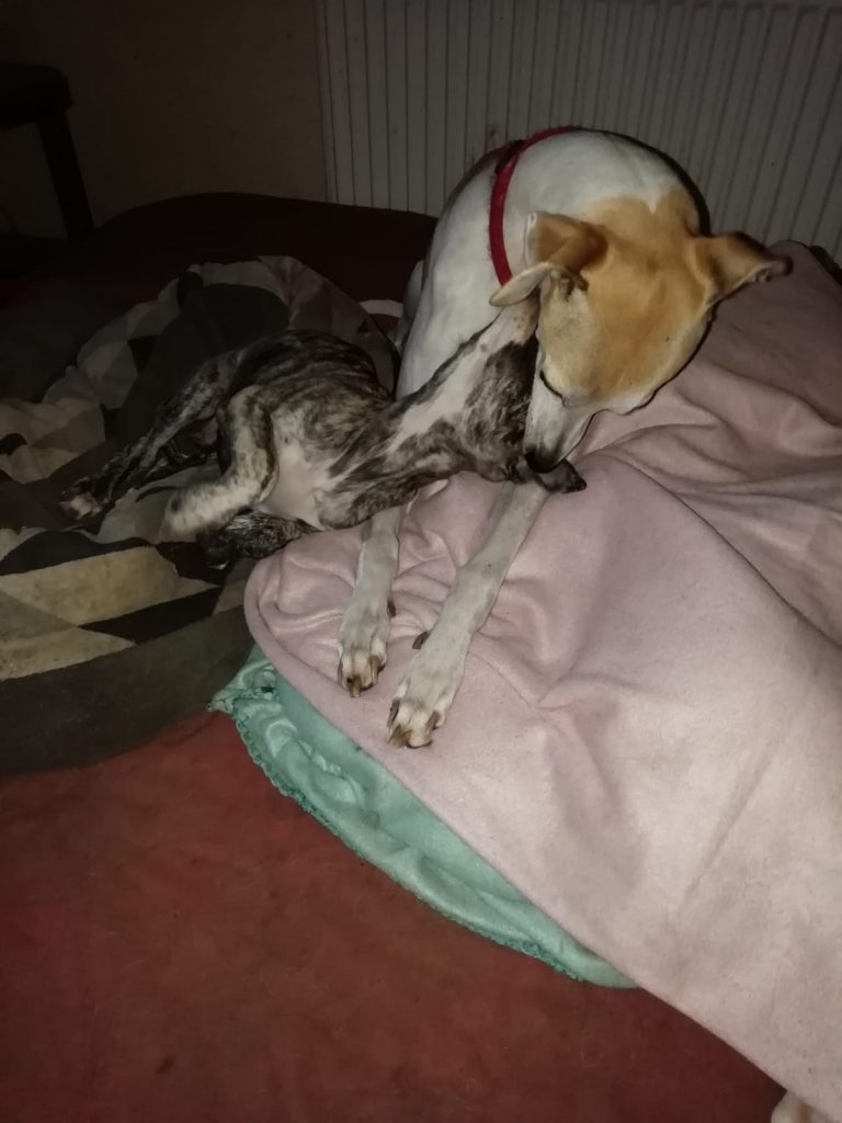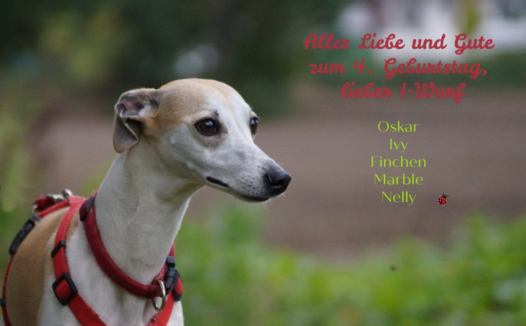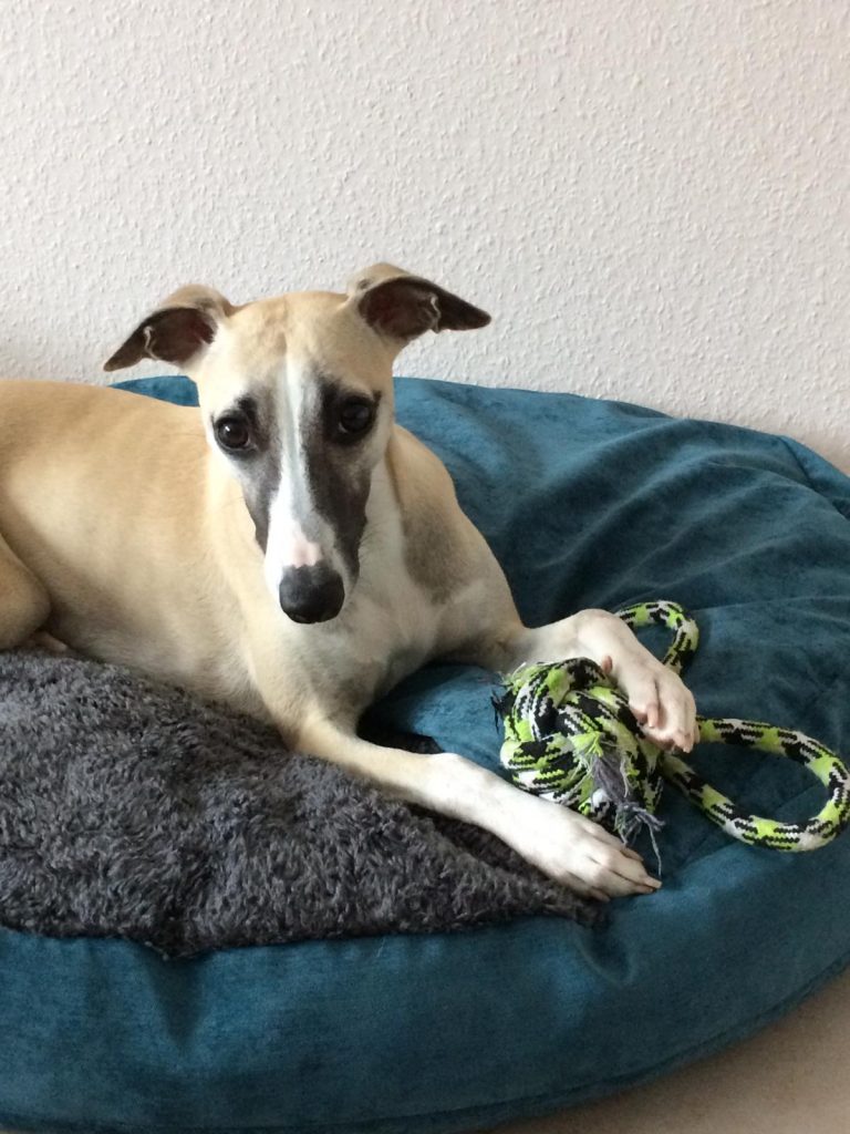 Lovis- gern auch Fraggle genannt Whippet-Suchbild. Justus und Loki in einem Körbchen Polly hat sich den Spitznamen „Flummi“ oder „Klein Walabie“ erarbeitetLounes kann auch ordentlich „Tralafitti“ machen und wird auch gern „Wurm“ genannt.