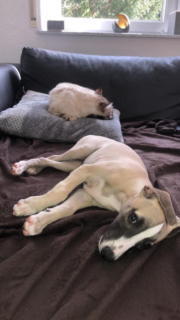 Das freut uns natürlich sehr. Insbesondere, wenn die zugesandten Bilder mit so lieben Worten wie „wir sind voll happy“ oder „Bei uns ist alles super. Dankeschön, weltbeste Züchterin von Traumwhippets für diesen tollen Hund“ über „Er ist so süß und wedelt den ganzen Tag. Sogar beim Fressen“ begleitet werden.