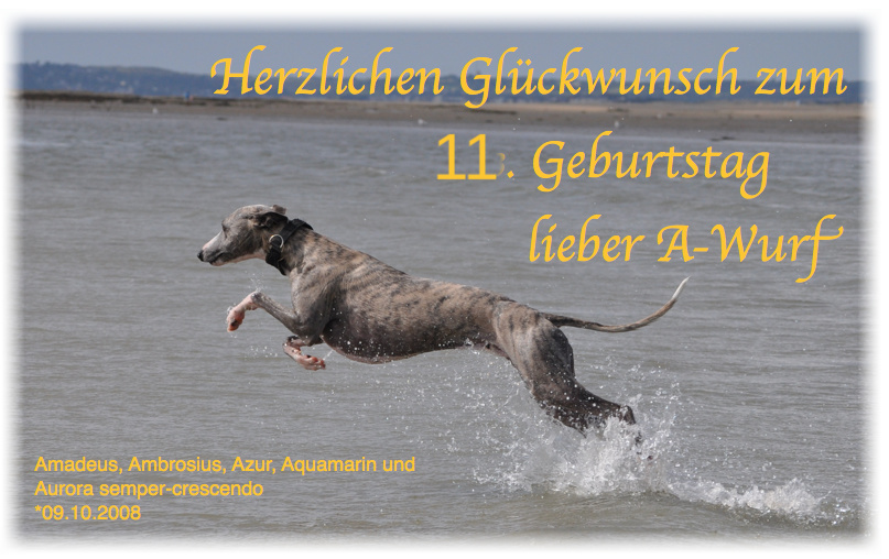 Heute vor bereits 11 Jahren legten die A’s den Grundstein für die „semper-crescendo’s“. Hach, was waren wir stolz und aufgeregt! Die fünf blau-gestromten zogen wir mit viel Liebe auf und investierten viel Zeit in die Prägung. Das hat sich bis heute nicht geändert. Mit nur einem Wurf im Jahr, können wir das leisten und hoffen, jedem einzelnen Welpen ein gutes „Startpaket“ für das Leben mitgeben zu können.