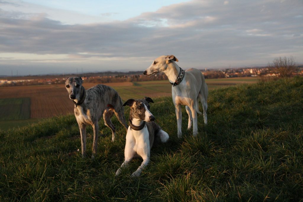 Simone und Rene versorgen uns immer regelmäßig mit Fotos ihres Rüden-Trios. Wir freuen uns sehr, dass Papa Dino sich von seinen beiden Söhnen „nicht unter kriegen“ lässt und bei den Spaziergängen noch immer voran läuft!