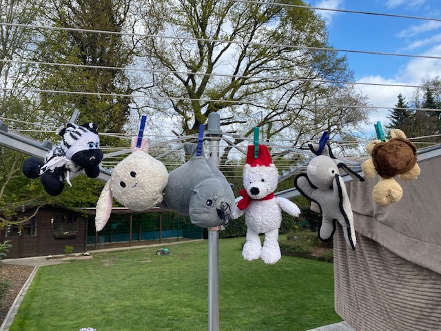 Zum Entsetzen der Hunde, hängt das Lieblingsspielzeug an der Leine und keiner kommt dran… muss auch mal sein. Morgen können die Tierchen wieder durch den Dreck gezogen, gebissen, angeknabbert und durch die Gegend geschleudert werden 😉