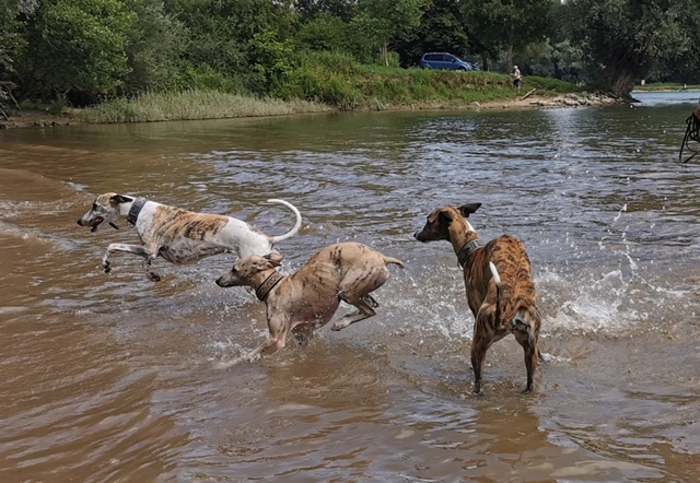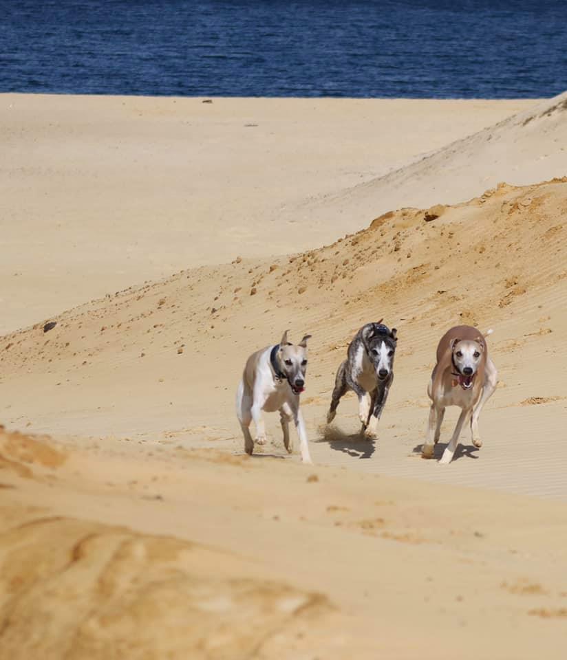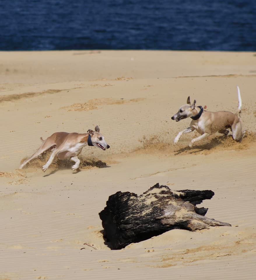 Langsam laufen wieder kleinere Veranstaltungen bei den Windhundvereinen an. Zumeist Renn-oder Coursingtrainings, da die sich zeitlich besser einteilen lassen als Ausstellungen, so dass nicht ganz so viele Menschen aufeinander treffen. Gianni, Grande Sorpresa semper-crescendo und sein Halbbruder Leo, Key to My Soul semper-crescendo, hatten viel Spaß.