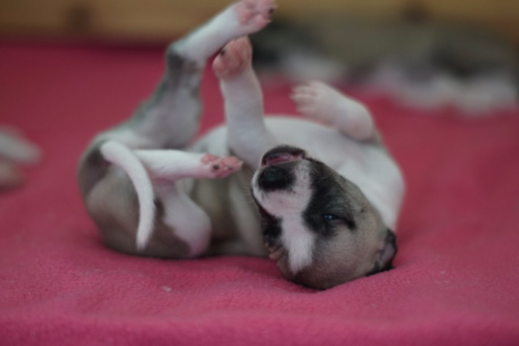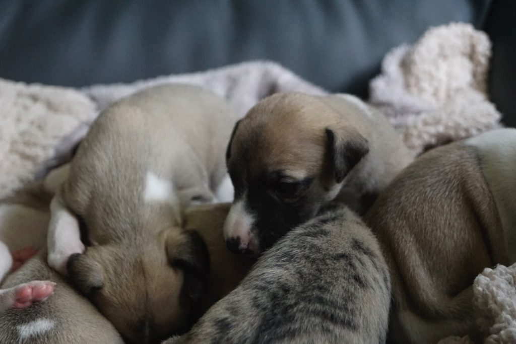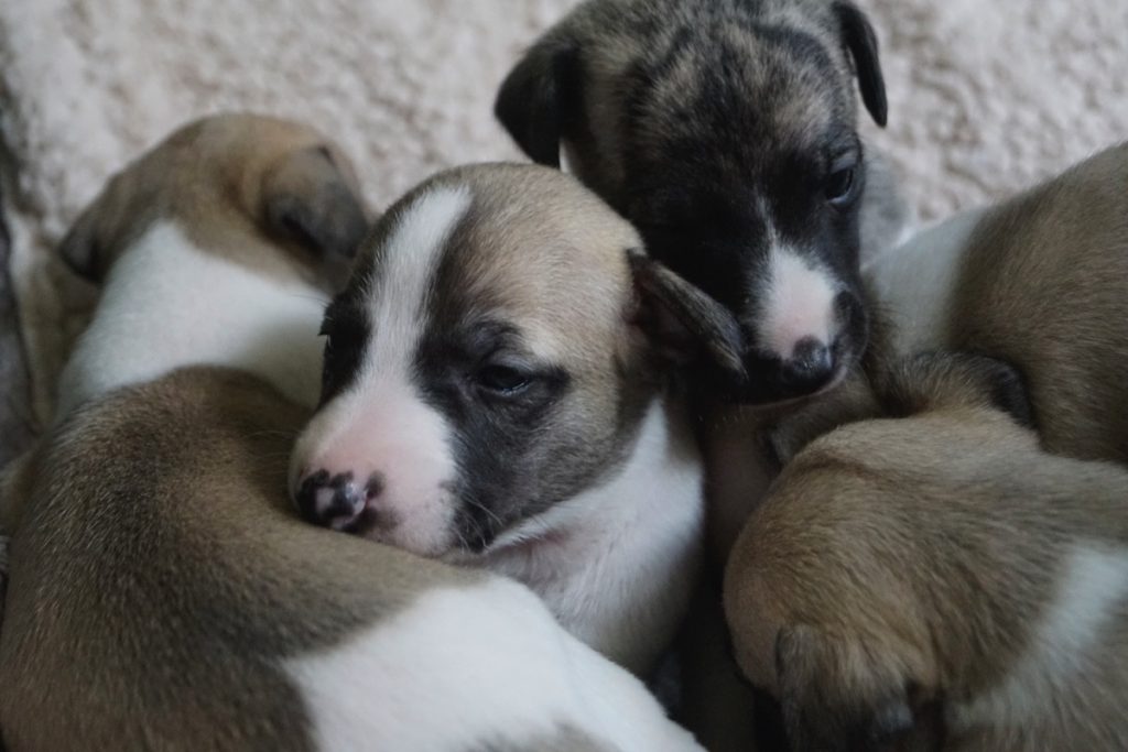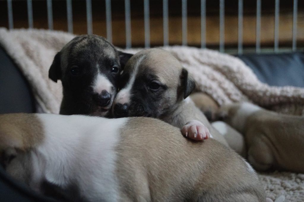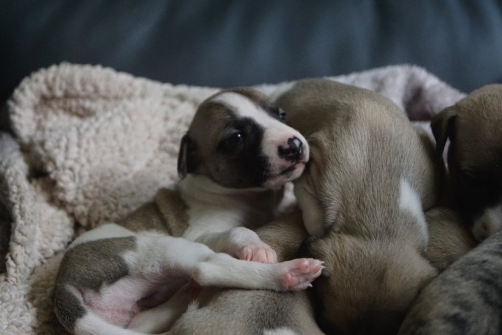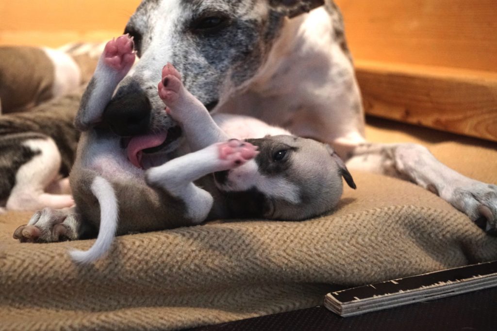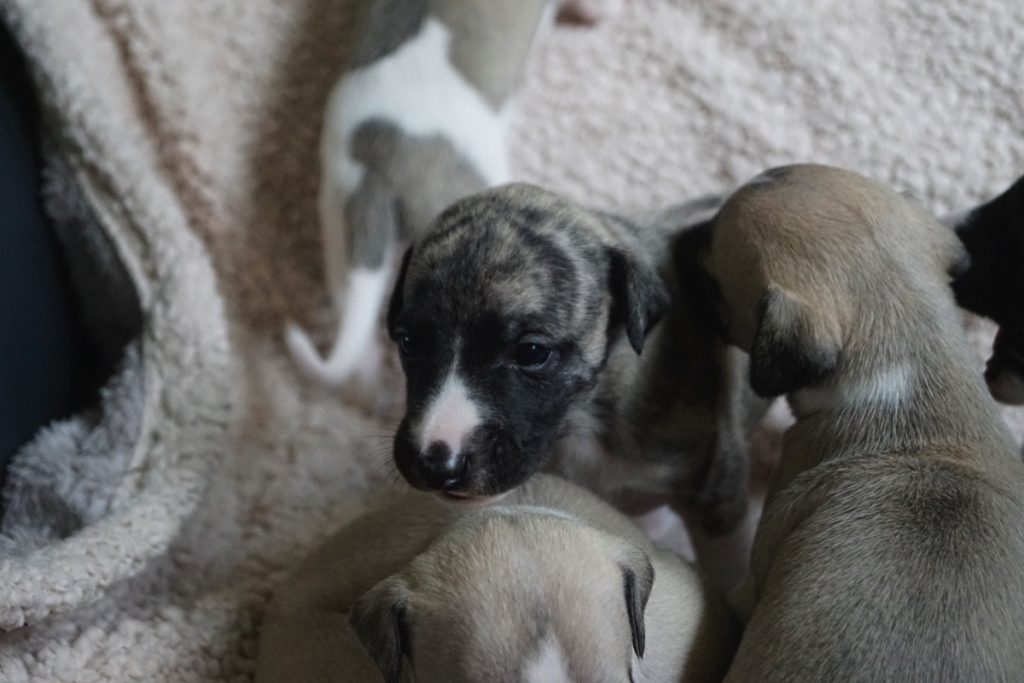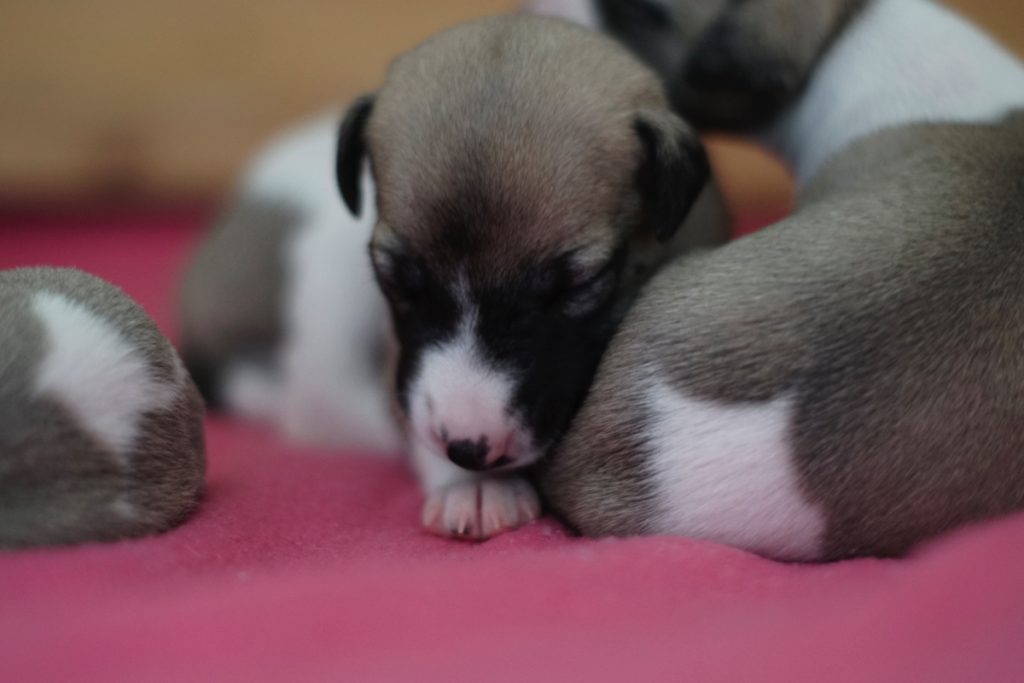 Bevor es frisch manikürt zurück in die Wurfkiste ging, habe ich die Zwerge in Joy’s Körbchen „zwischengeparkt“. Dabei sind diese Fotos entstanden.