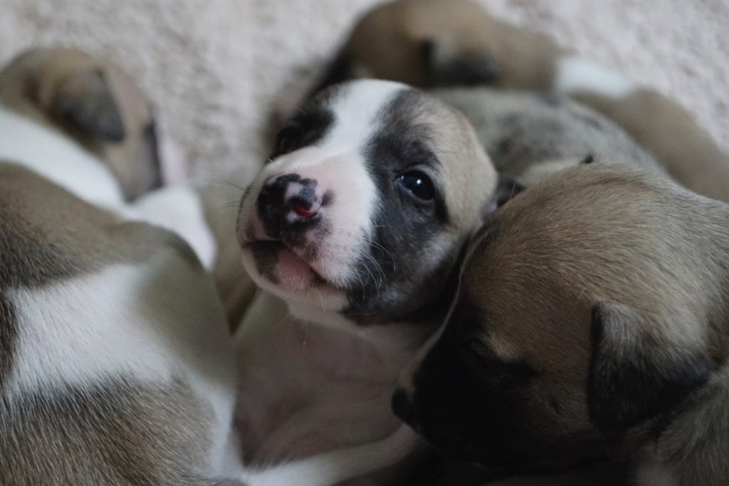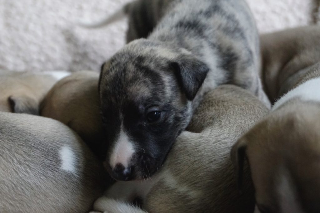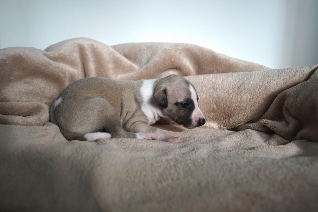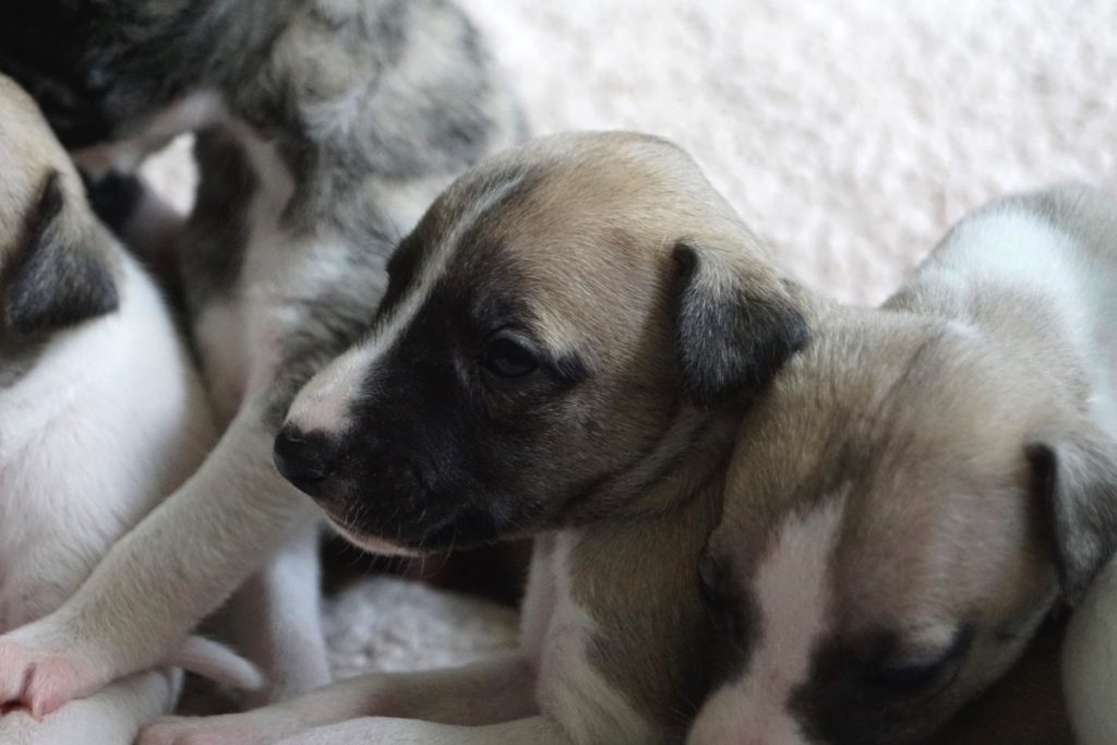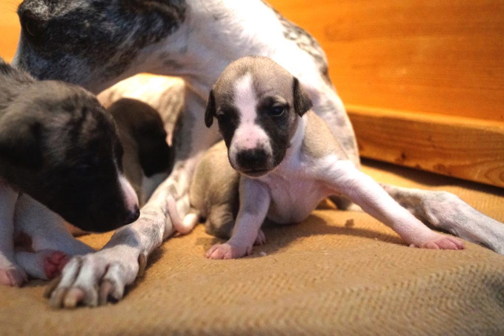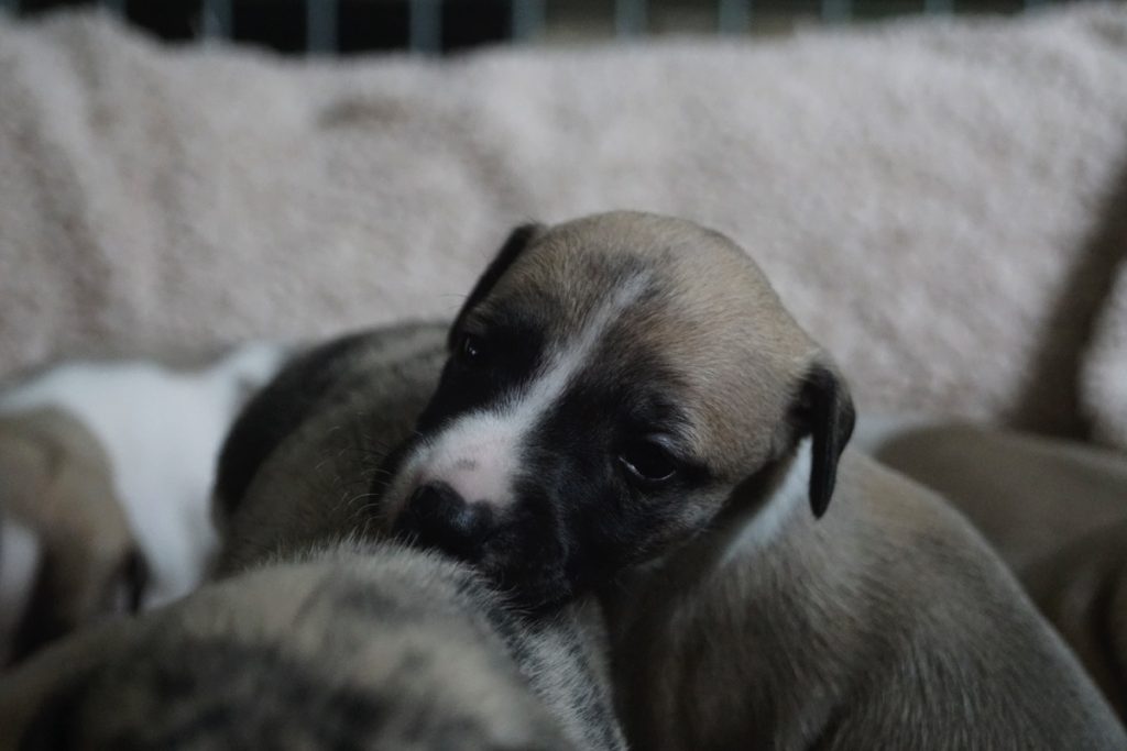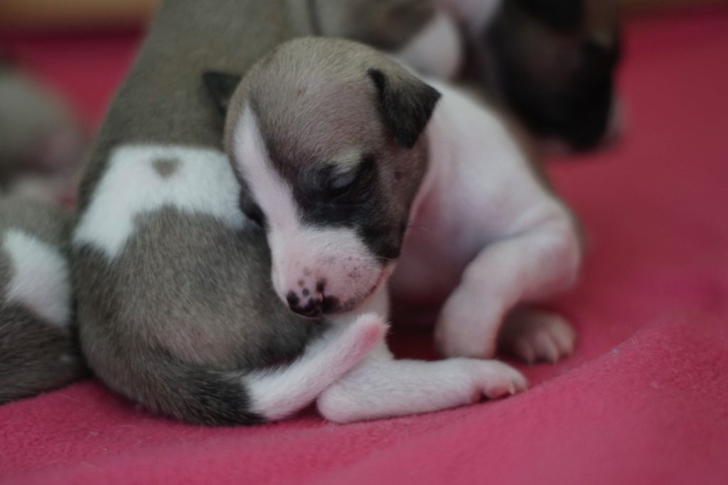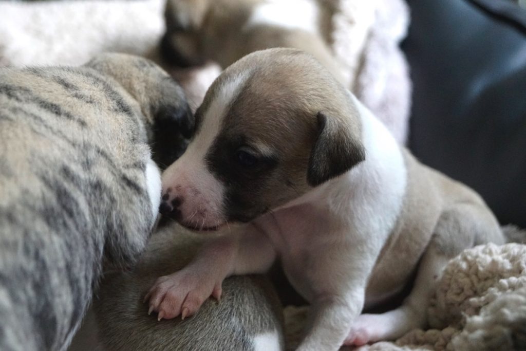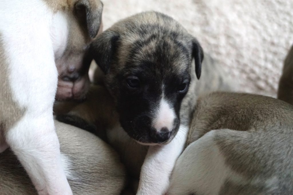 Bevor es frisch manikürt zurück in die Wurfkiste ging, habe ich die Zwerge in Joy’s Körbchen „zwischengeparkt“. Dabei sind diese Fotos entstanden.