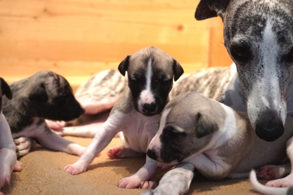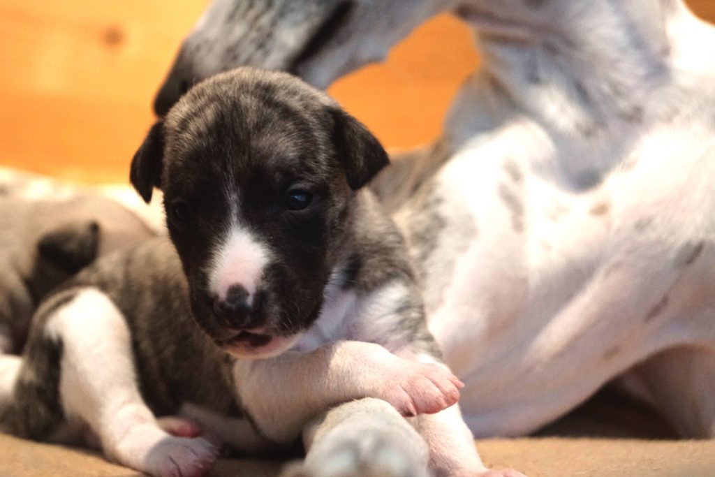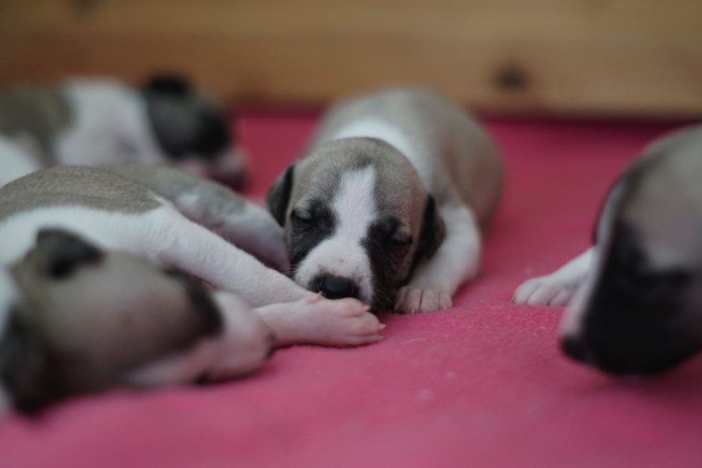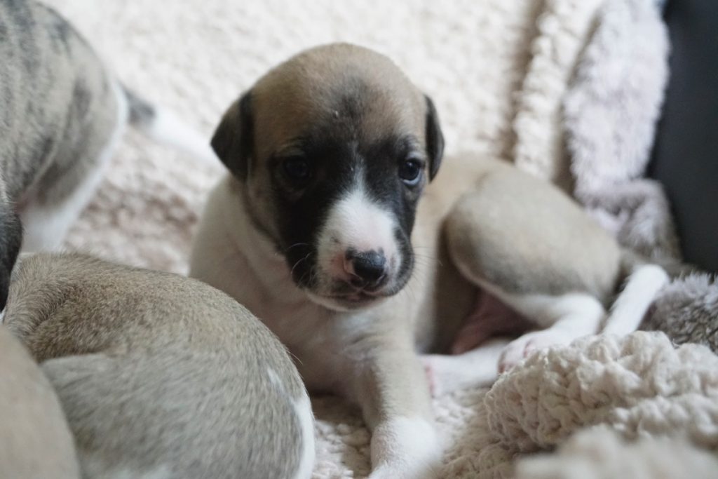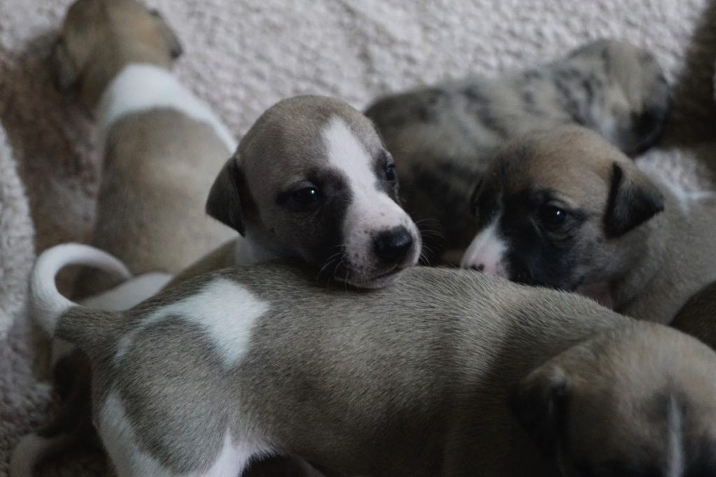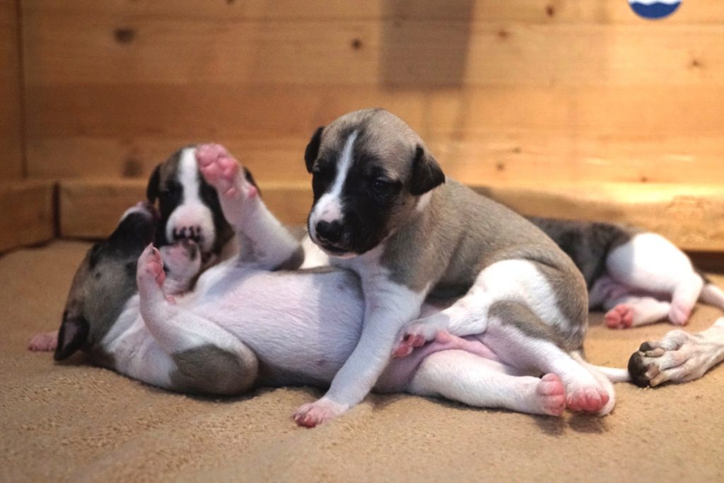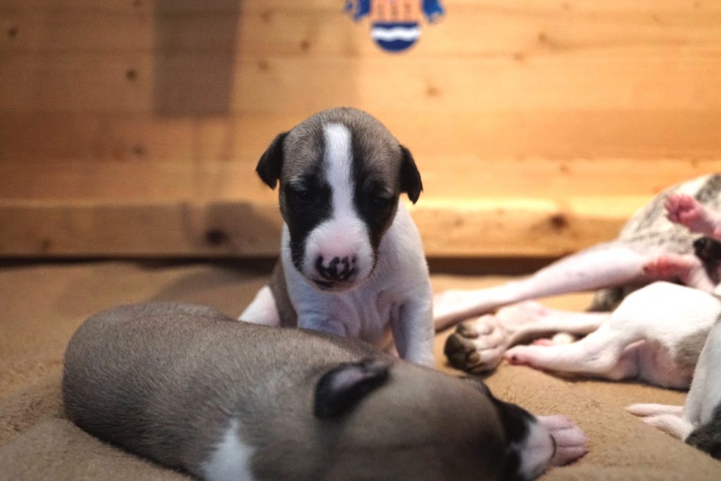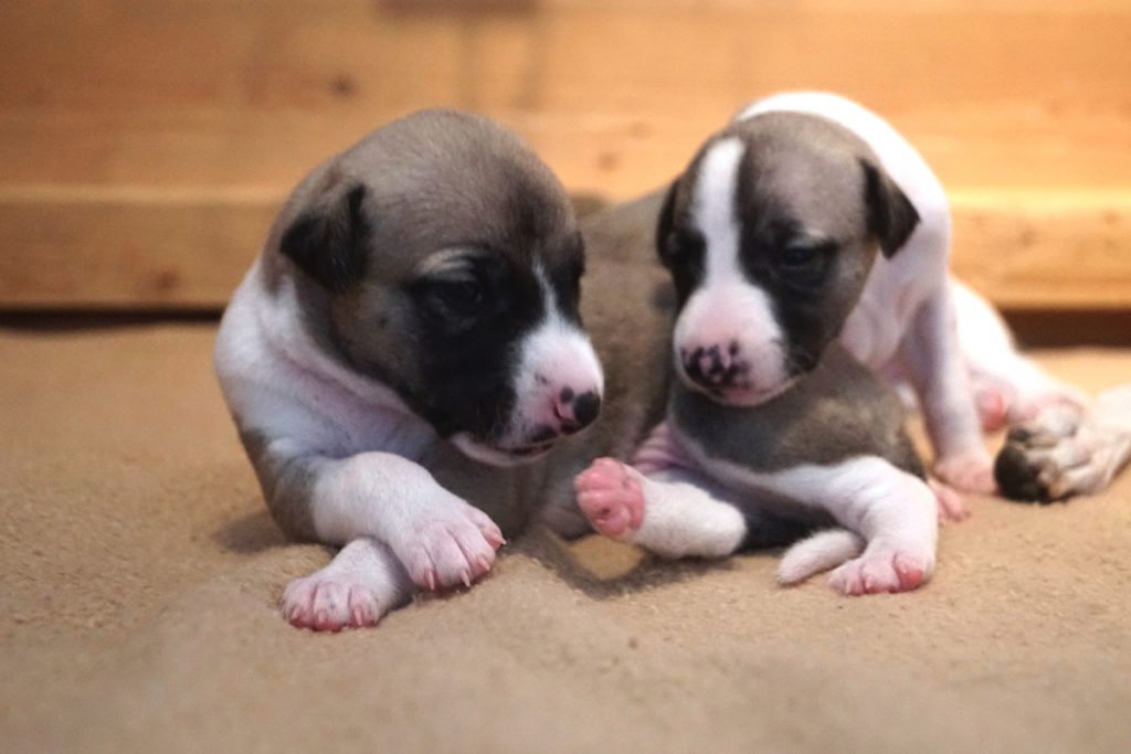 Bevor es frisch manikürt zurück in die Wurfkiste ging, habe ich die Zwerge in Joy’s Körbchen „zwischengeparkt“. Dabei sind diese Fotos entstanden.