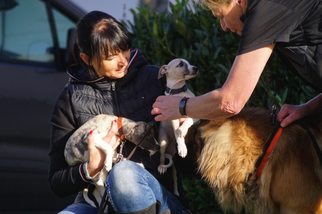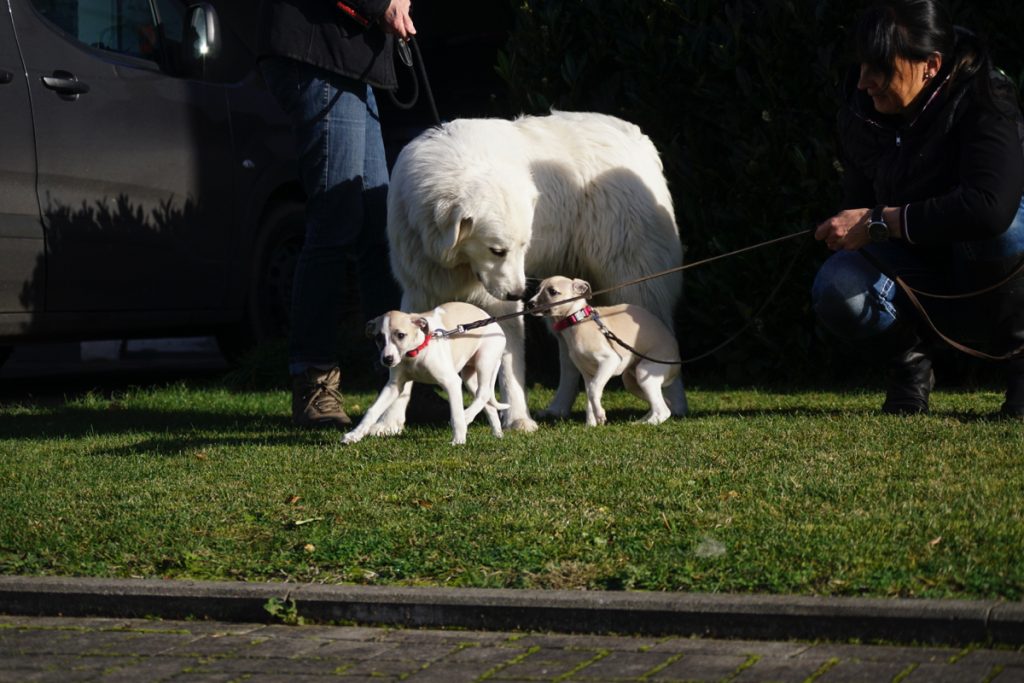 Hey, Bommel, komm‘ mal! Hier gibt’s Welpen zu beschnuppern! – Bärbel