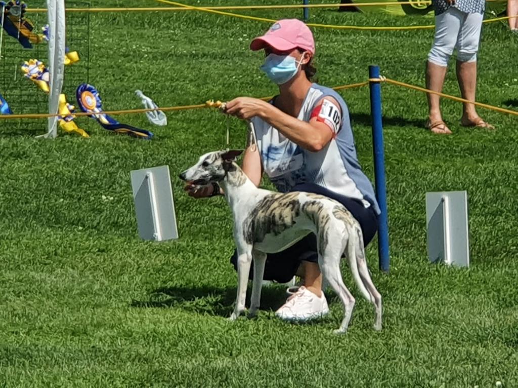 Lucky gewann mit V1 CAC die Gebrauchshundeklasse und Fleurs Papa Finlay rockte den gesamten Whippetring. Er erhielt das V1 CAC in der Championklasse, wurde Bester Rüde, im Stechen gegen die Hündin BOB und zu guter letzt belegte er im Best-In-Show-Ring (den es in der Schweiz wieder gibt- bei uns leider noch nicht wieder) Rang 3!