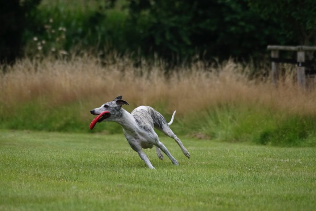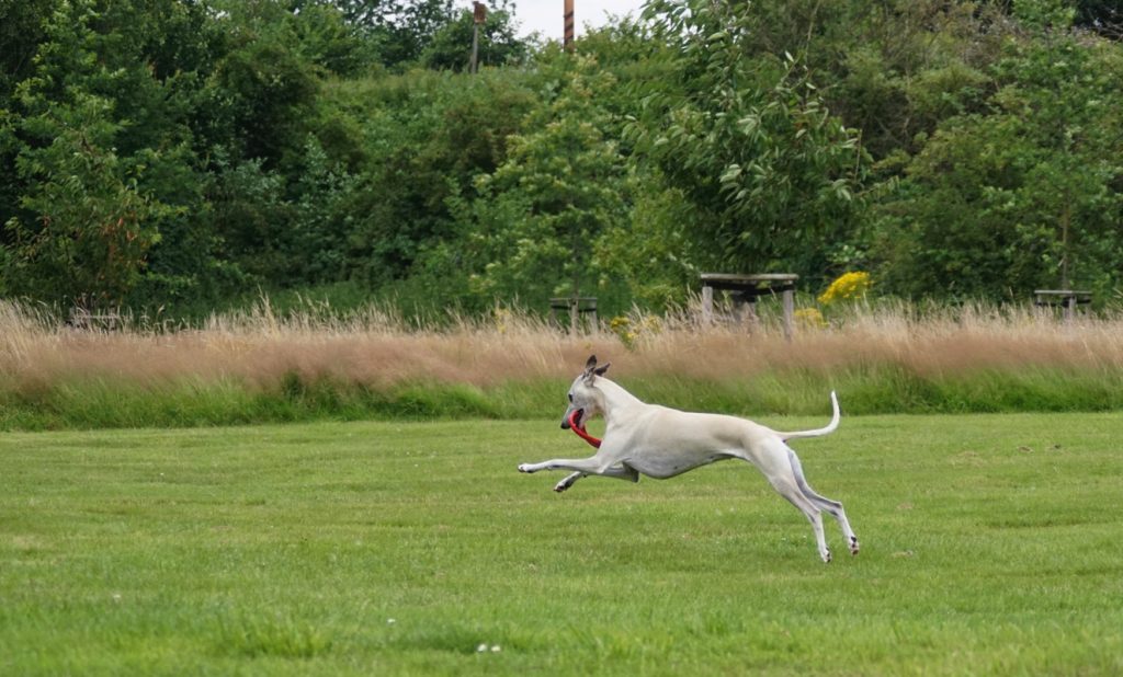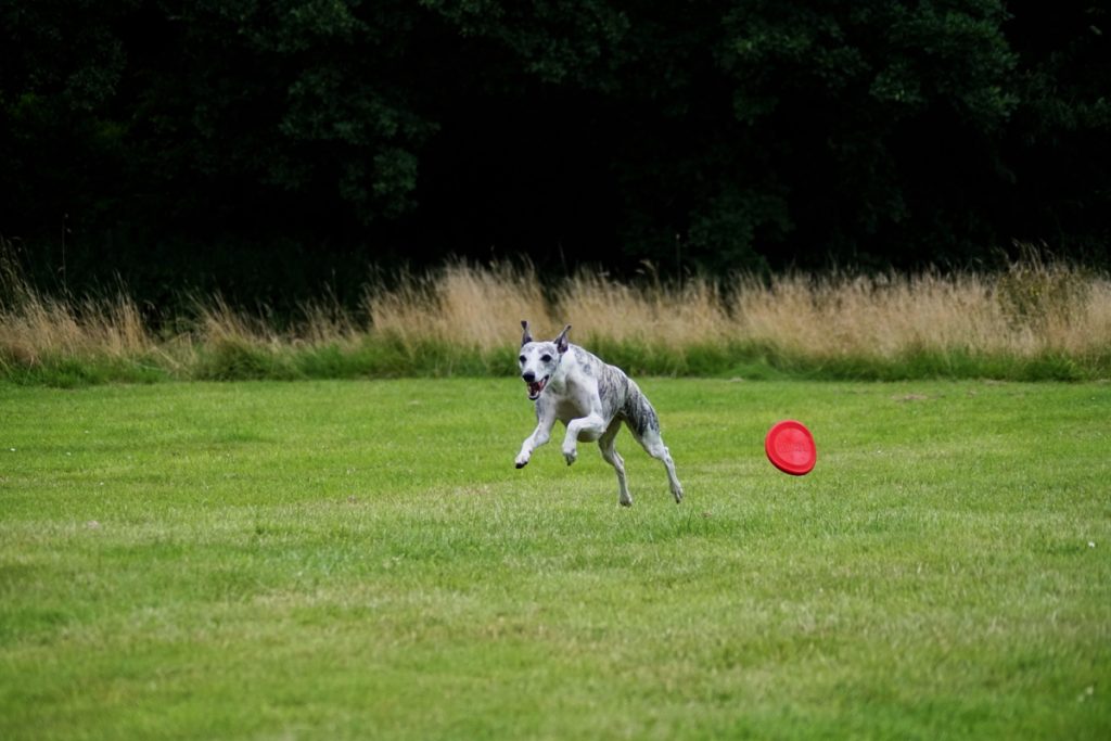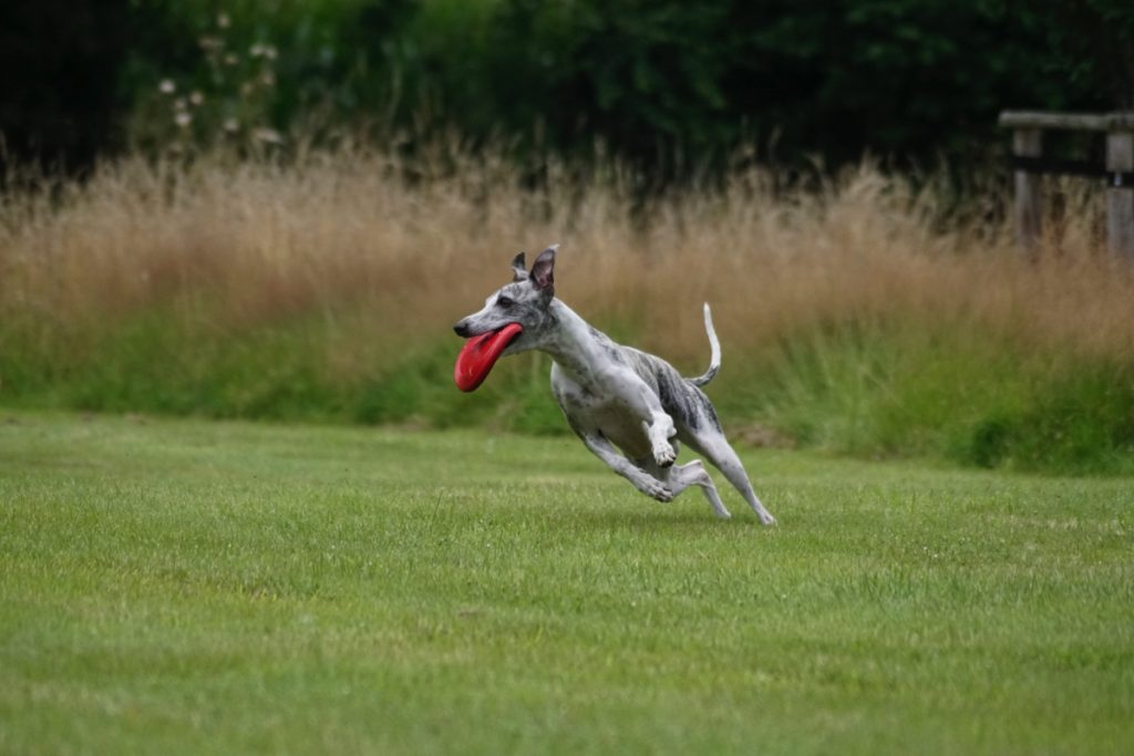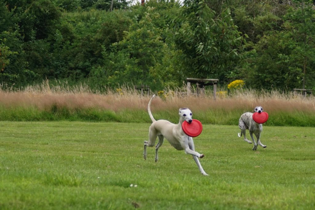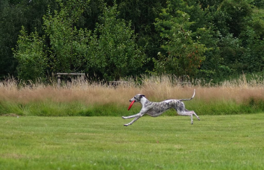 JuliJoyBeide haben ihre eigene Scheibe und auch wenn sie gleich aussehen, jede weiß, welche ihre ist. Ein bisschen verpusten bis zum nächsten DurchgangNein, Joy ist nicht an ihrem Frisbee vorbei gerannt. Das ist tatsächlich die von Juli. rasante KurvenlageHui, für heute reicht’s- da ist die Zunge ganz schön lang 😉Juli macht noch ein paar Dehnübungen bevor wir nach Hause gehen