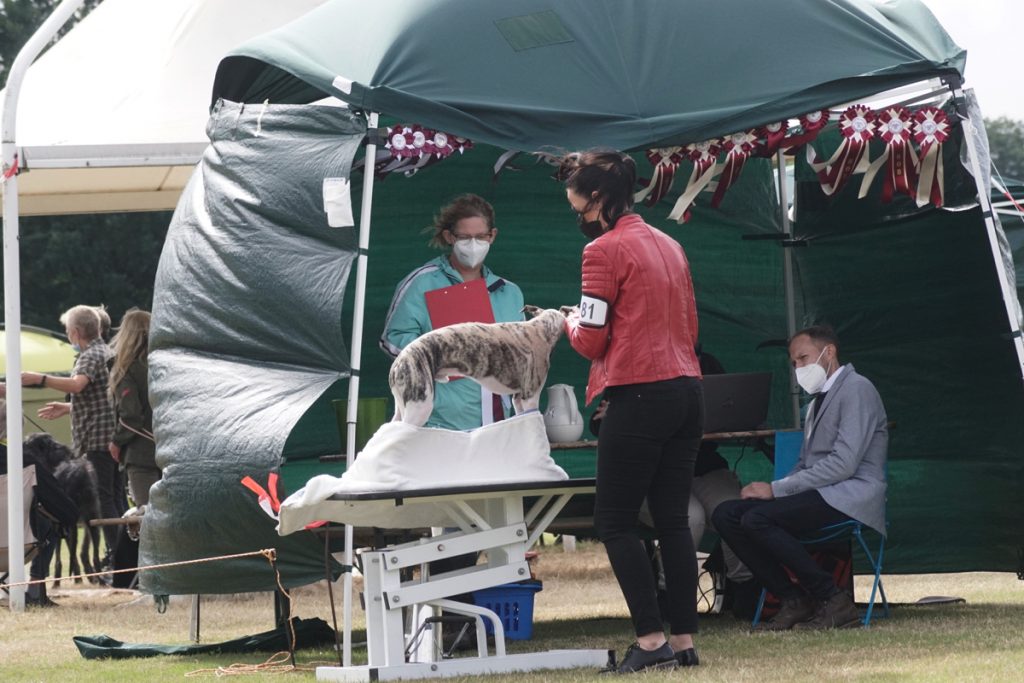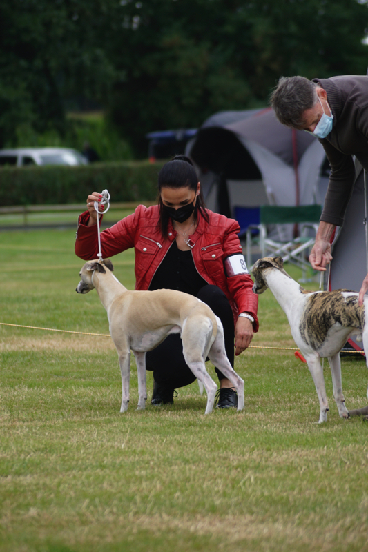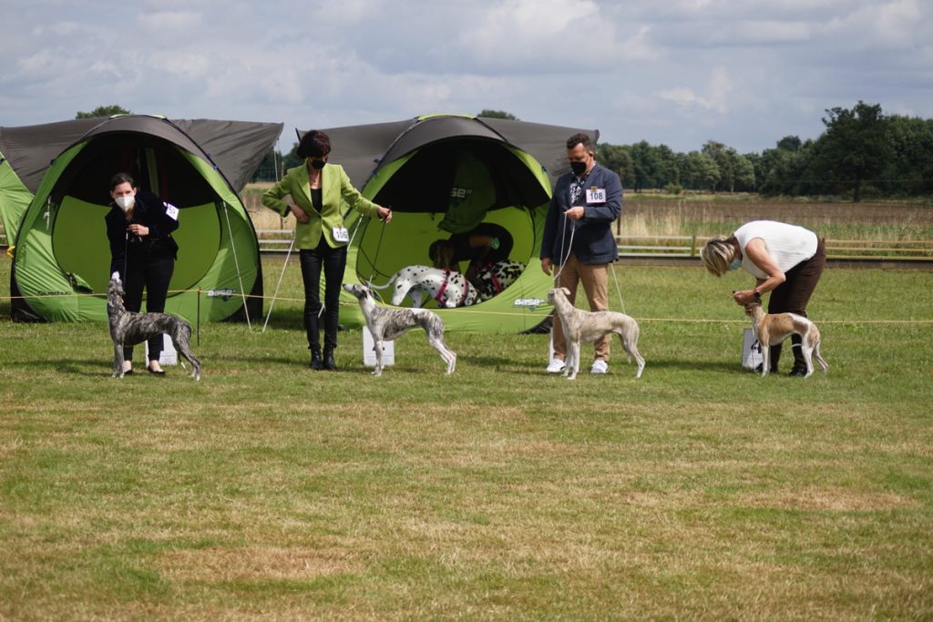 Eine steife Brise wehte heute auf der CAC-Ausstellung in Ostercappeln. Herr Rudolph/ D bewertete die Whippets. Auch wir waren wieder mit drei Hunden vertreten.