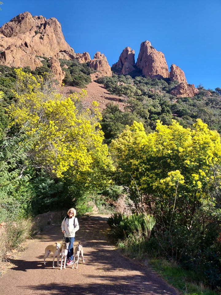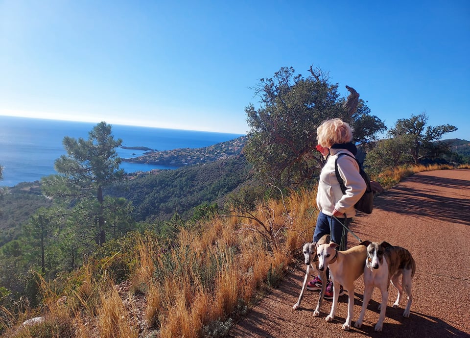 Simone und Rene sind dem Grau-in-Grau, das auch in Frankreich vorherrschte, ein bisschen entflohen und der Sonne entgegen gefahren. So verbringen sie mit ihren drei Whippets Dino, Bon Chance semper-crescendo, Gianni, Grande Sorpresa semper-crescendo und Leo, Key to My Soul semper-crescendo ein paar wunderschöne Tage in Le Dramont an der französischen Riviera!