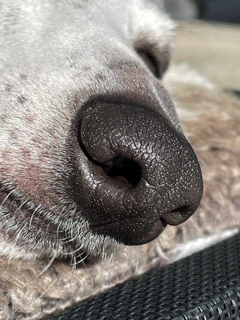 Ist das ein Hauch von Frühlingsduft? Joy hält zumindest ihre Nase in die richtige Richtung. Die Hunde genießen es, das erste Mal in der Sonne draußen zu liegen, wenngleich es noch ganz schön kalt ist.