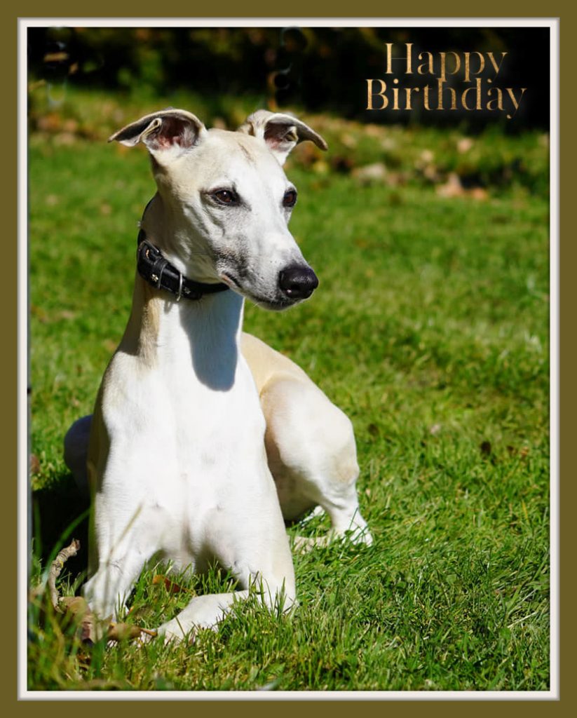 Ja, wow, die Gs feiern heute ihren 8. Geburtstag. Das ist nicht wirklich alt für einen Whippet, aber Gianni, Ch.Grande Sorpresa semper-crescendo, wird auf der nächsten Ausstellung bereits in der Veteranen-Klasse starten. Das fühlt sich irgendwie komisch an.