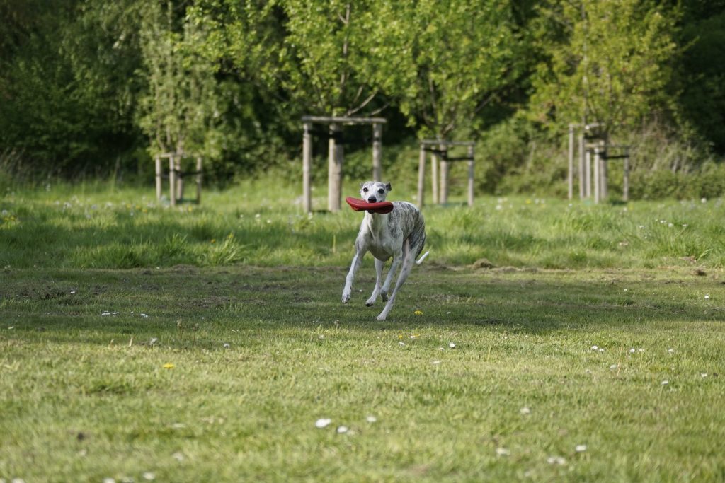 Regelmäßig gehe ich mit den Mädels auf die schöne Wiese und werfe ihnen ihre heißgeliebten Frisbees. Leider gelingt es mir nicht, Fotos von den spektakulären Sprüngen zu machen, wenn ich allein mit Hunden, Frisbee und Kamera bin. Dennoch einige schöne Fotos.