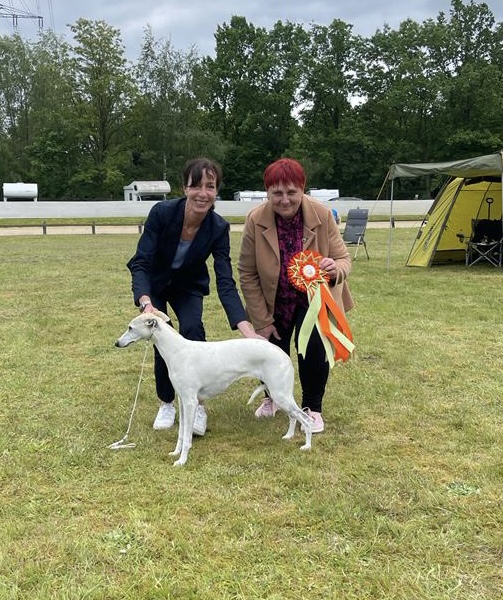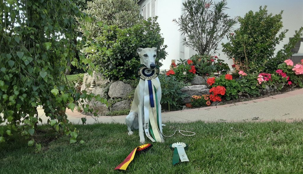 Am Samstag bereits richtete Frau Märki-Casanova/CH die Whippets auf der CAC-Schau in Freiburg, wo Gianni, Ch. Grande Sorpresa semper-crescendo, gemeldet war.